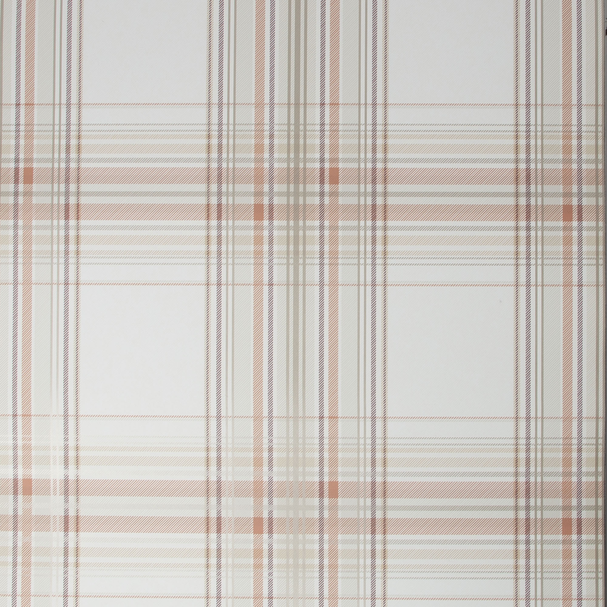 Ταπετσαρία τοίχου με απαλή υφή και επαναλαμβανόμενο καρό μοτίβο σε εκρού, μπέζ και ροδακινί αποχρώσεις