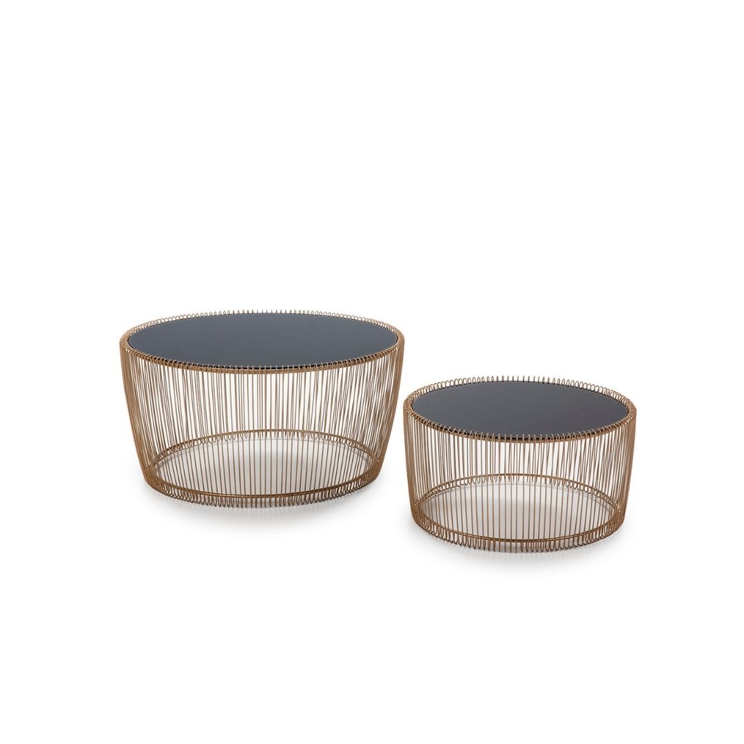 Σετ από δύο τραπεζάκια σαλονιού με γυάλινη επιφάνεια και μεταλλική βάση