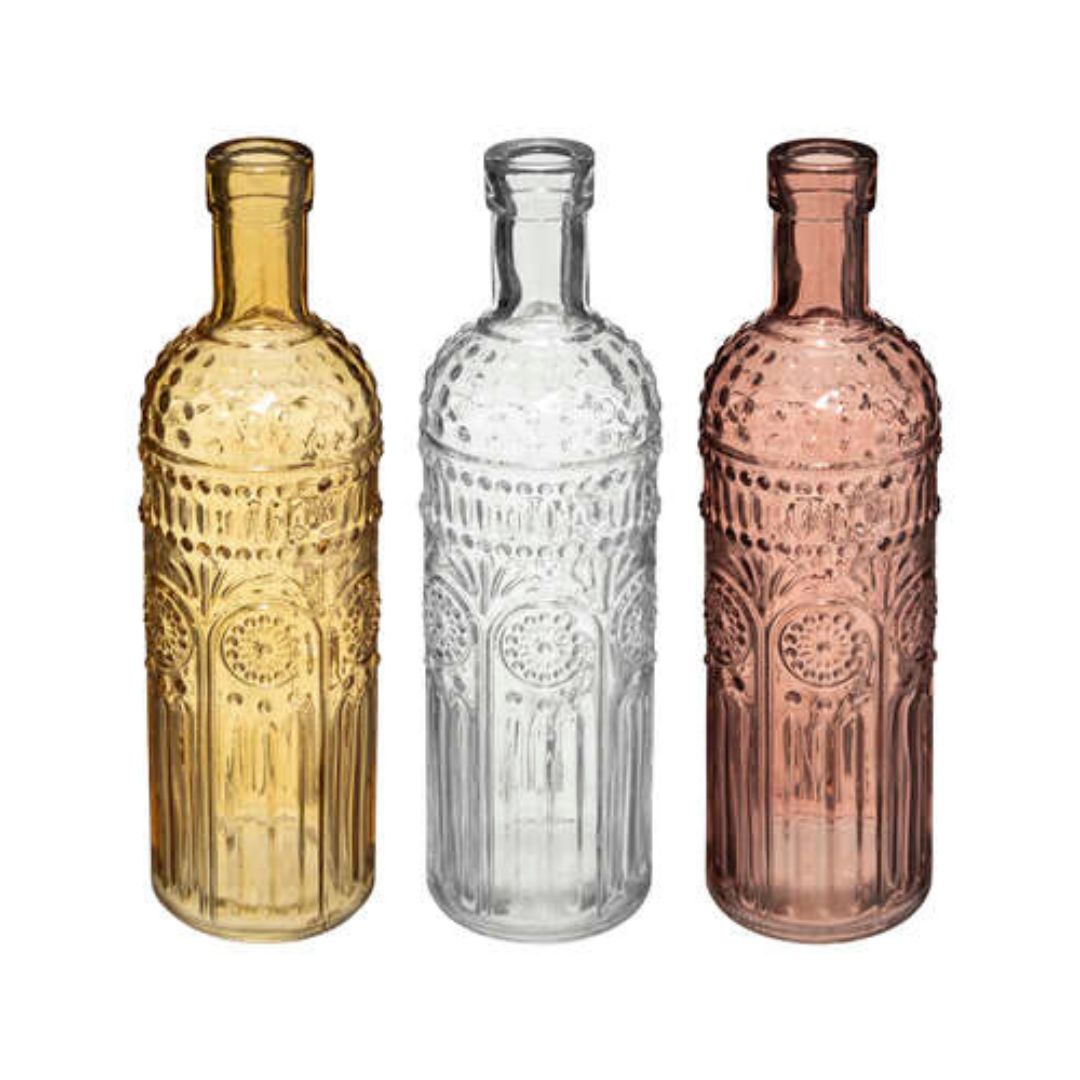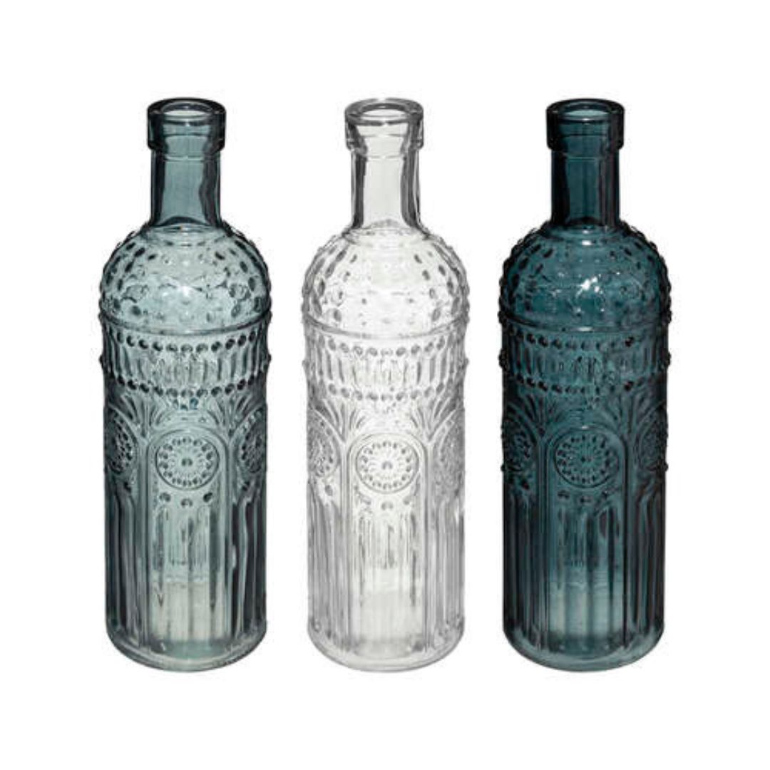 Γυάλινα μπουκάλια με ανάγλυφα σχέδια, 3 τεμάχια