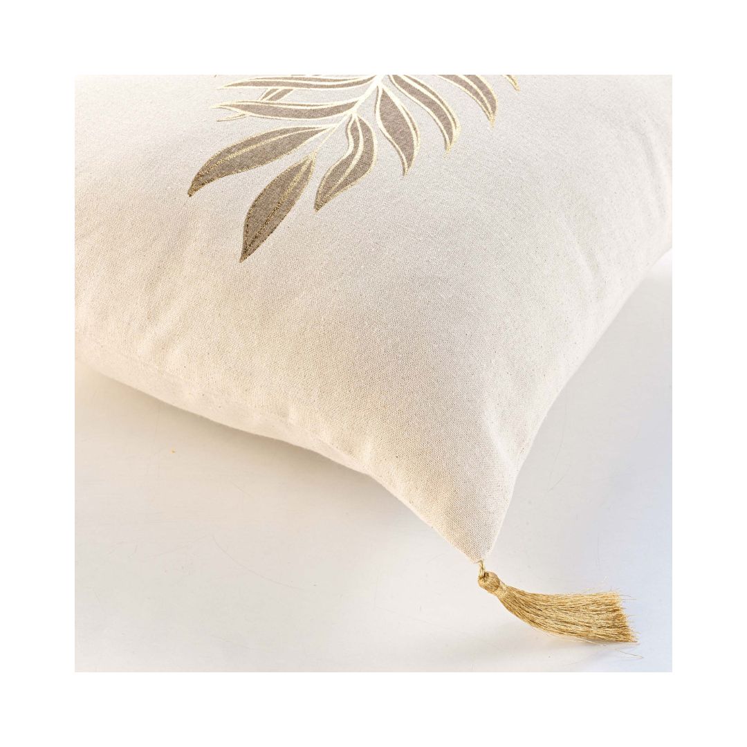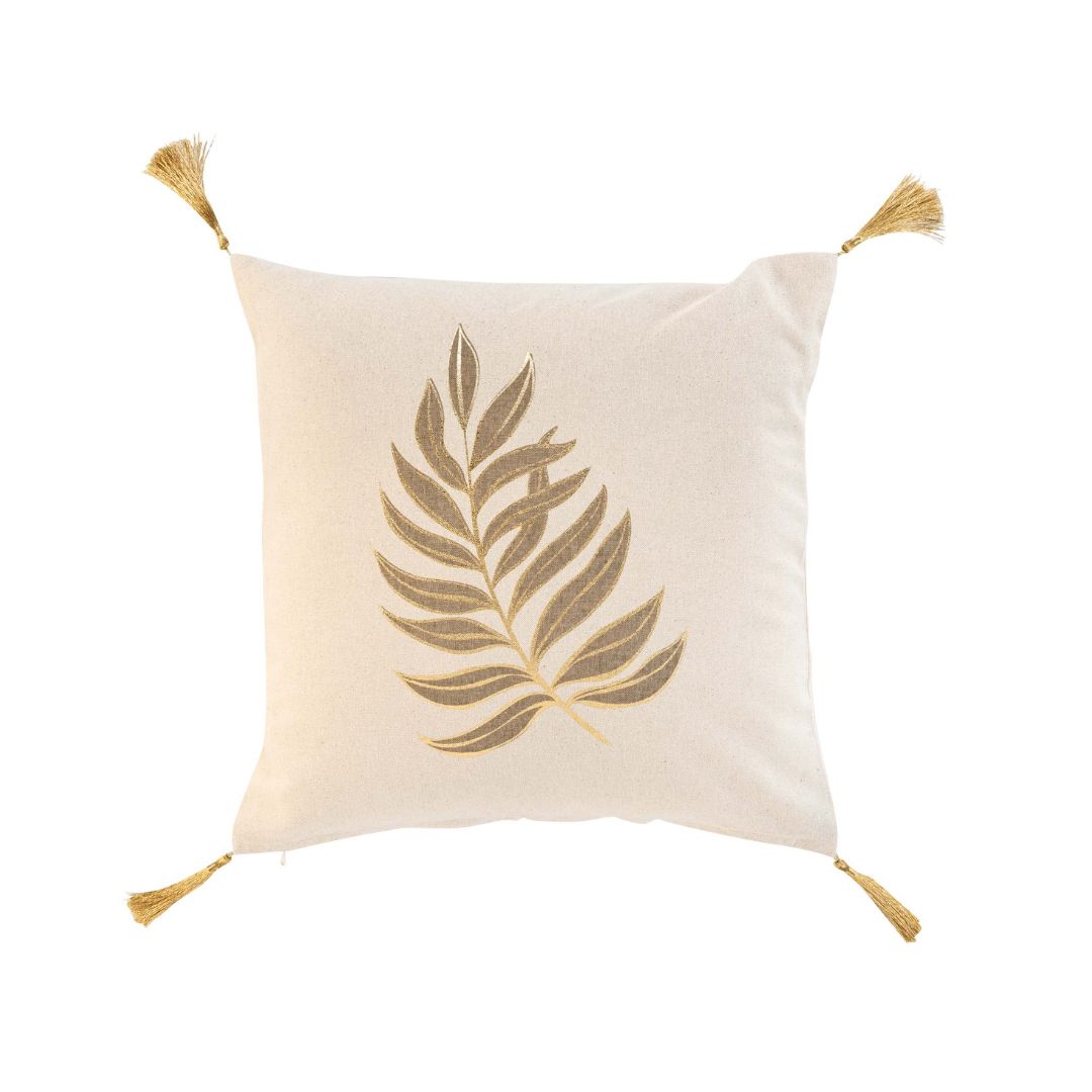 Διακοσμητικό μαξιλάρι με αποτύπωση φύλλου ελιάς και χρυσές λεπτομέρειες