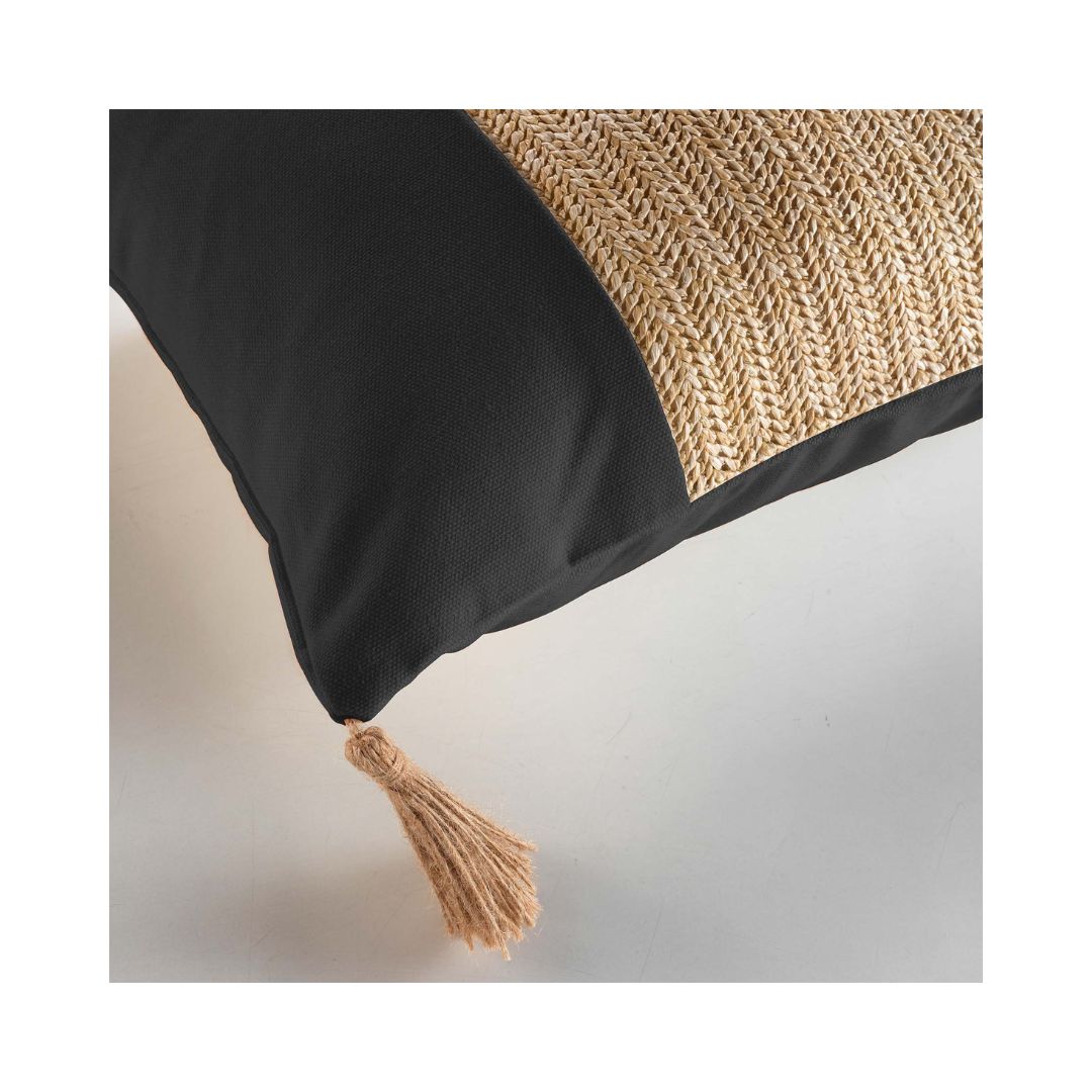 Διακοσμητικό μαξιλάρι σε μαύρο χρώμα με καφέ λεπτομέρειες και φούντες