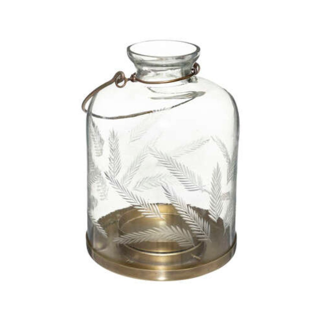 Γυάλινο φανάρι με ανάγλυφα φύλλα