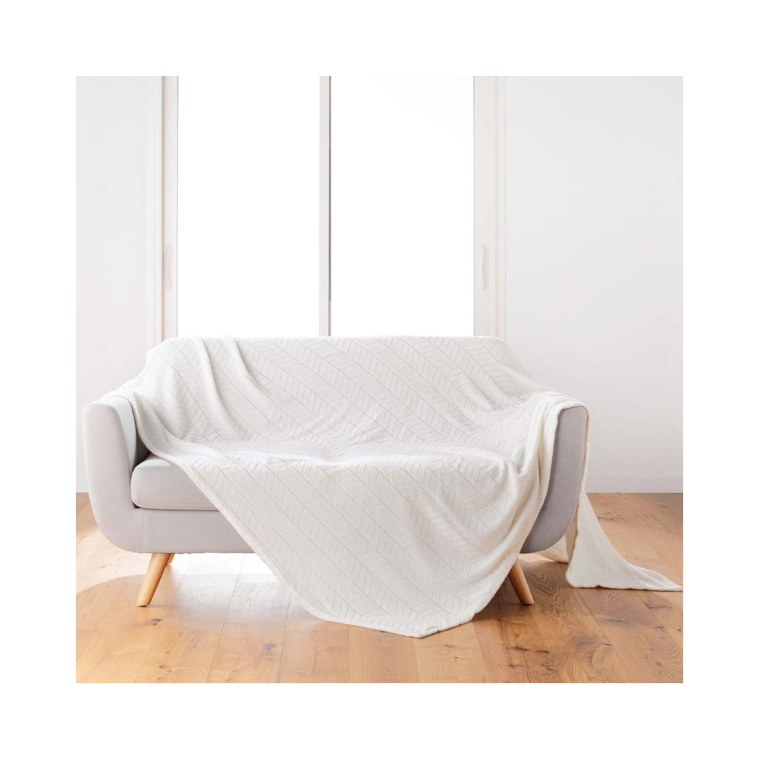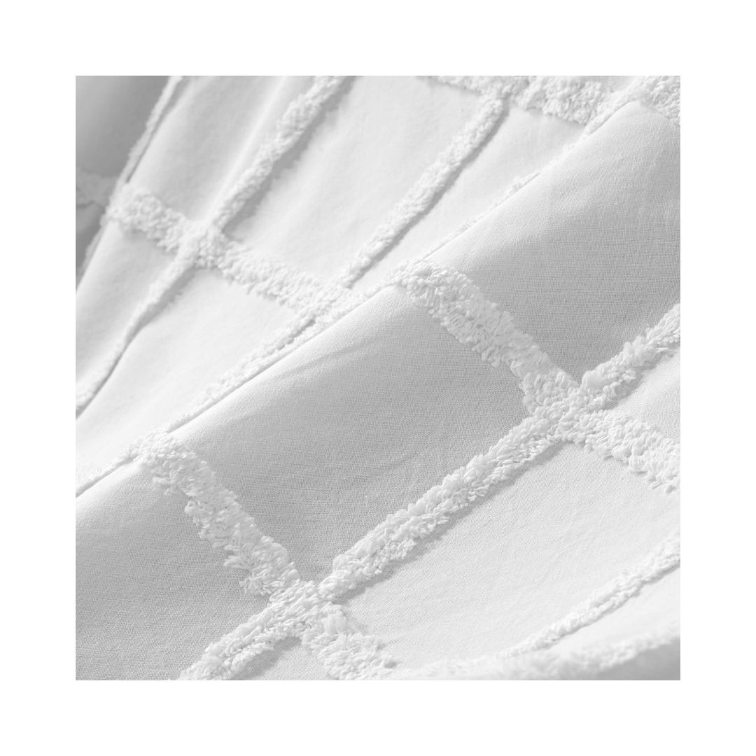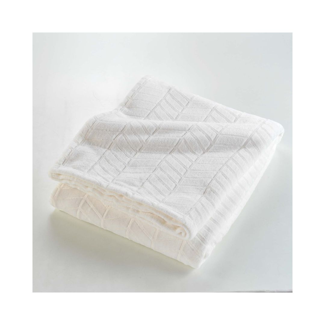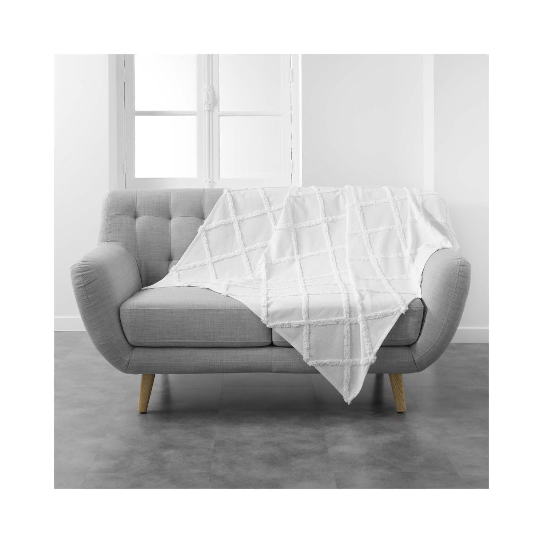 Βαμβακερό ριχτάρι σε λευκό χρώμα με ανάγλυφα – φουντωτά σχήματα ρόμβων
