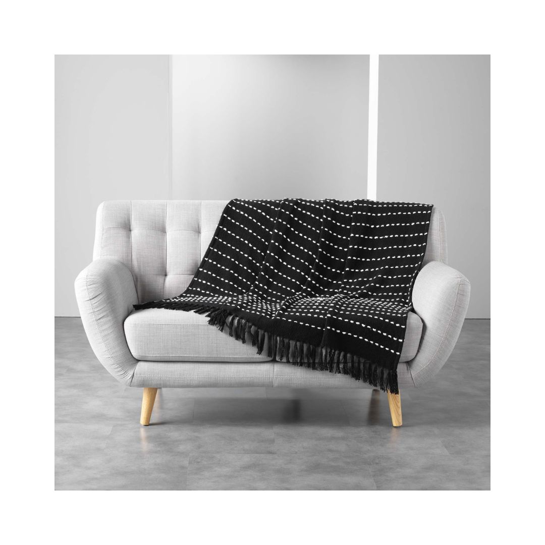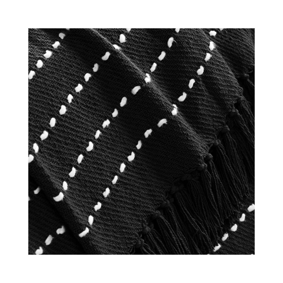 Βαμβακερό ριχτάρι σε μαύρο χρώμα με λευκές διακεκομμένες ρίγες