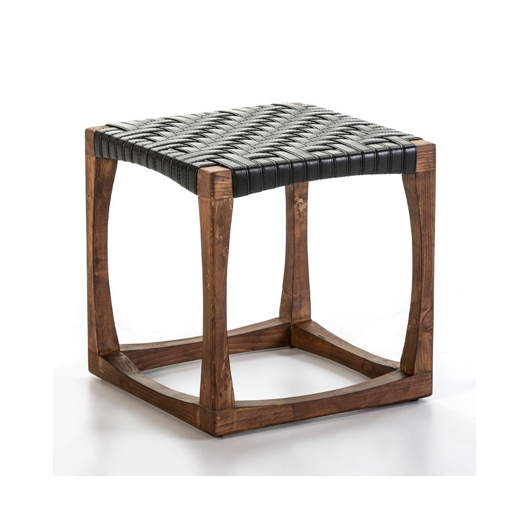 • × Ξύλινο σκαμπό με δερμάτινη μαύρη επένδυση σε σχήμα κύβου