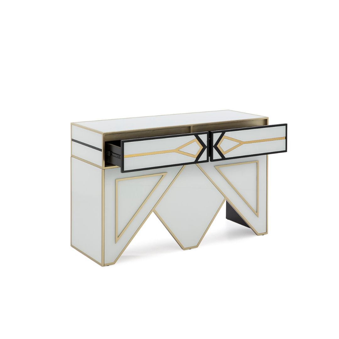 Κονσόλα παραλληλόγραμμη σε λευκό χρώμα με μαύρες και χρυσές λεπτομέρειες