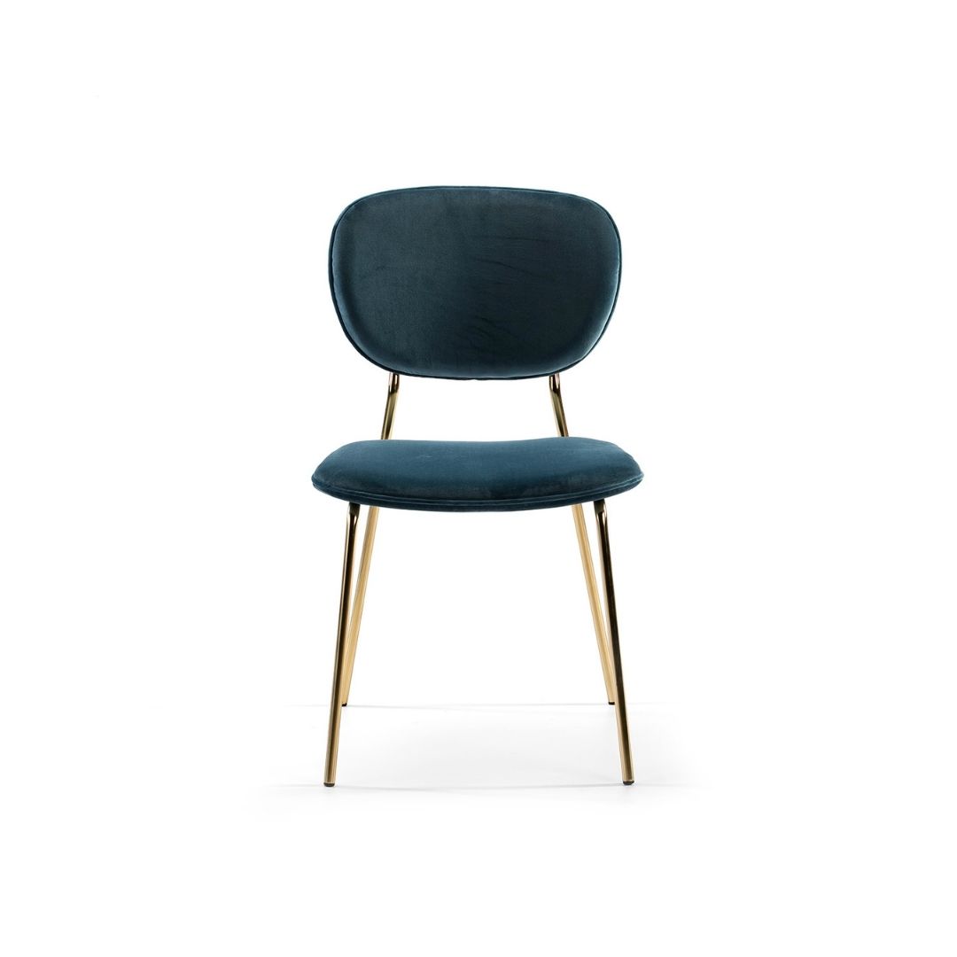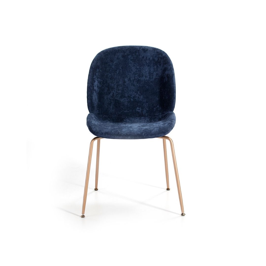 Καρέκλα τραπεζαρίας με βελούδινη επένδυση μπλε χρώματος και χρυσό μεταλλικό σκελετό