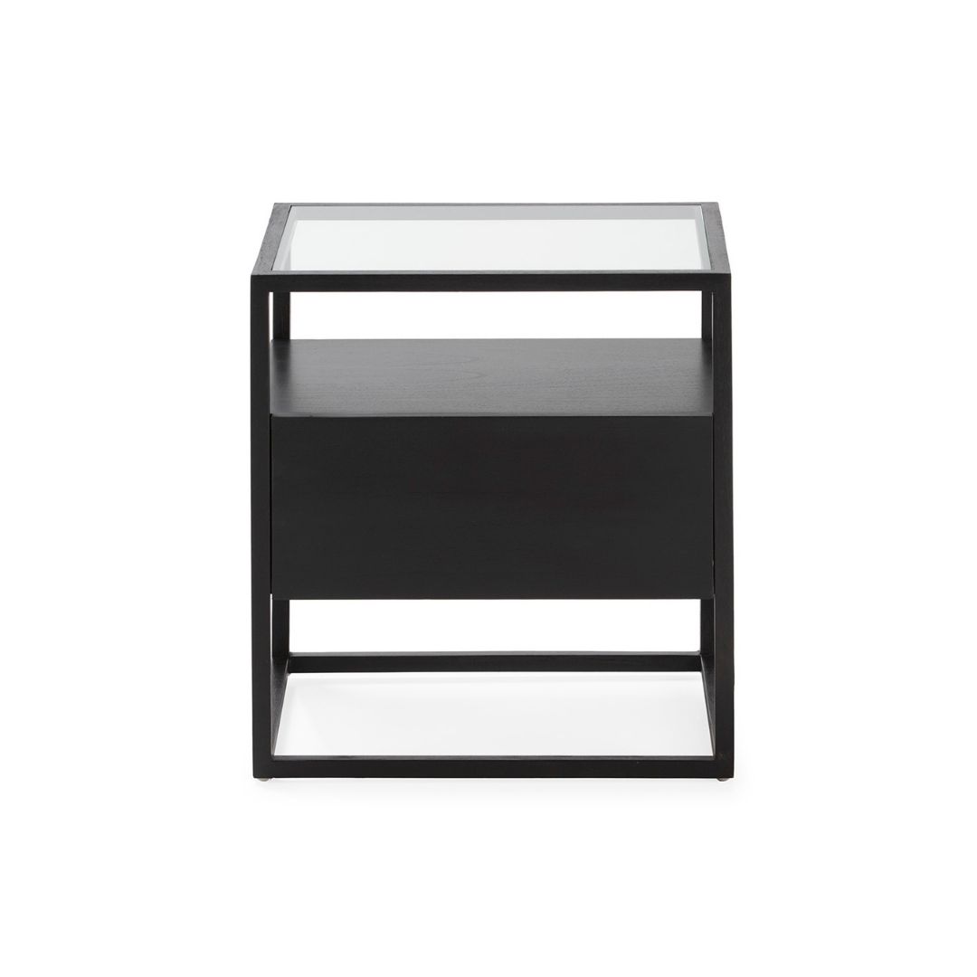 Ξύλινο κομοδίνο με γυάλινη επιφάνεια σε μαύρο χρώμα