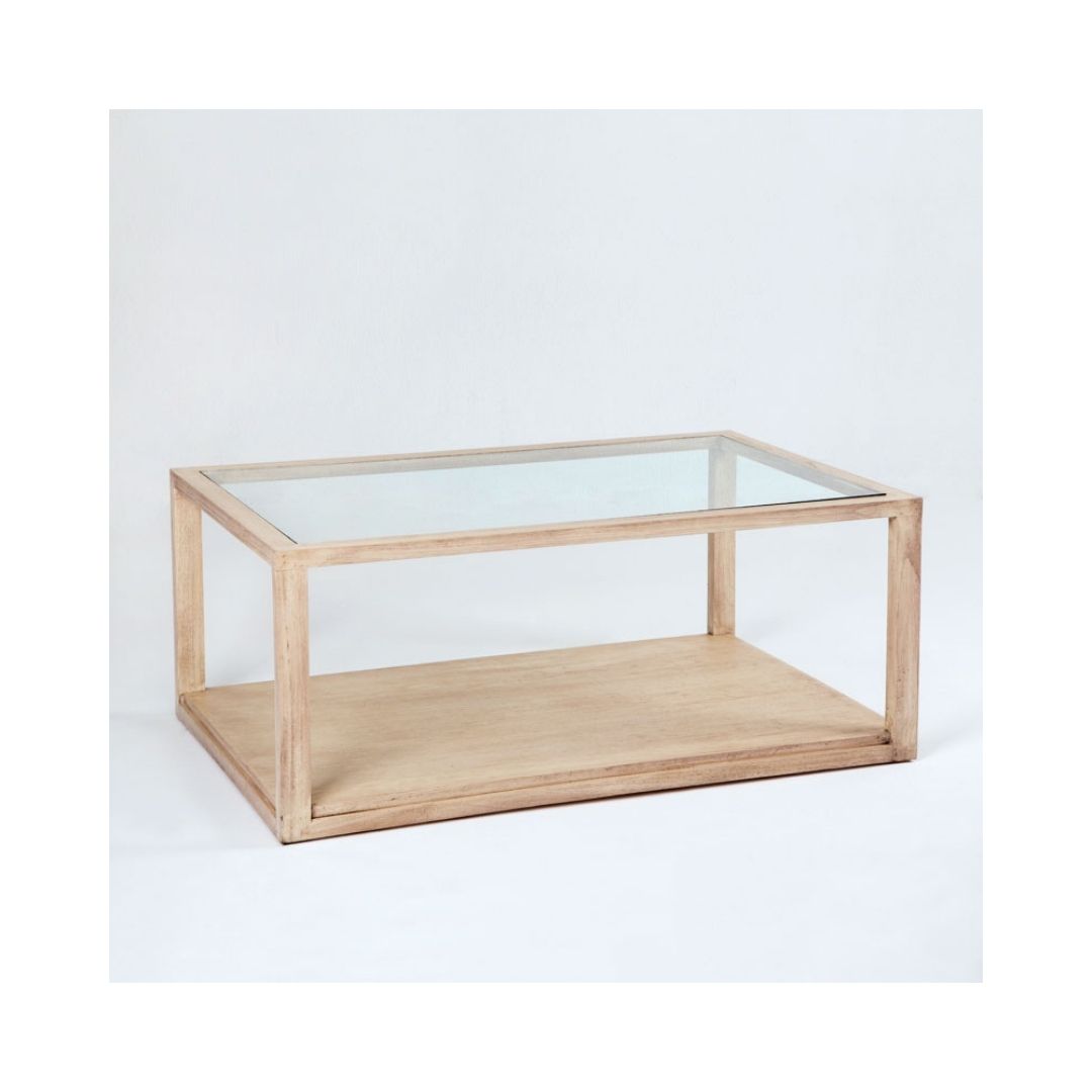 Ορθογώνιο τραπεζάκι σαλονιού από γυαλί και ξύλο