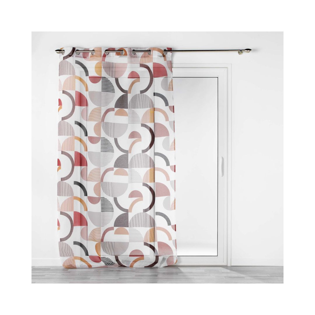 • × Κουρτίνα με υφή γάζας, με γεωμετρικά σχέδια, σε λευκό, πορτοκαλί και καφέ χρώμα.
