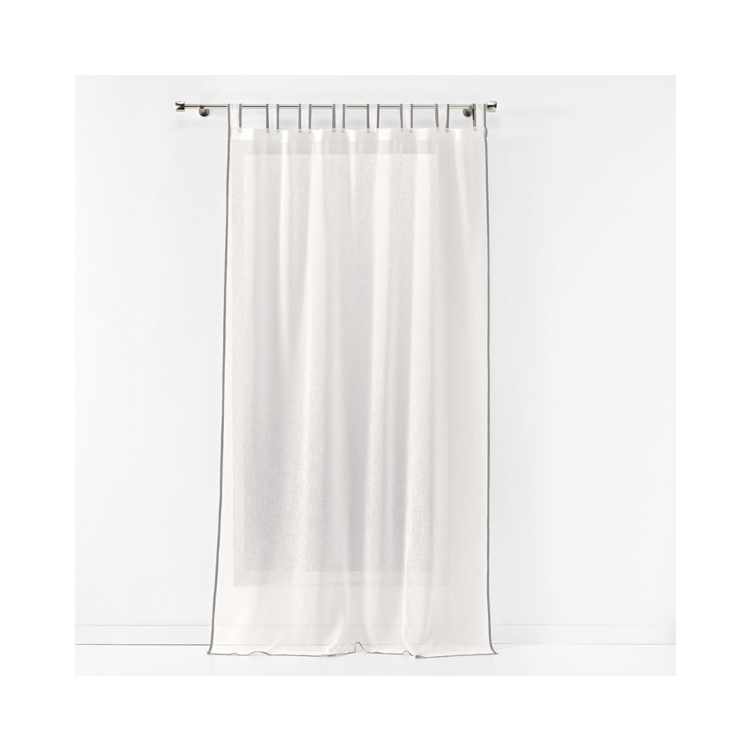 • × Κουρτίνα τύπου λινό, σε λευκό χρώμα με γκρι ρέλι