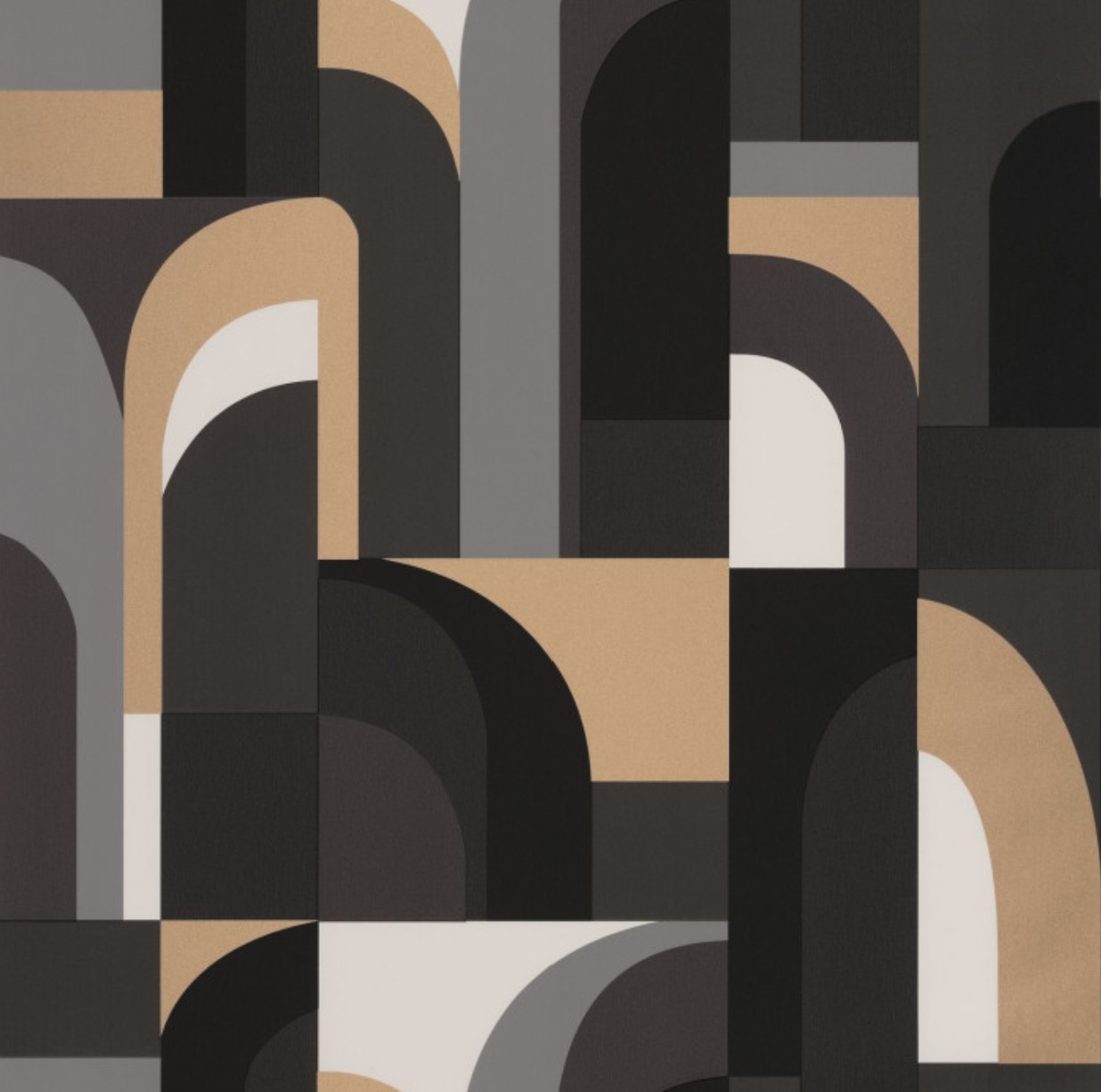 • × Ταπετσαρία τοίχου με γεωμετρικά μοτίβα σε μαύρες, γκρί και ματ χρυσές αποχρώσεις. Ταιριάζει σε art deco και ρετρό στυλ διακόσμησης