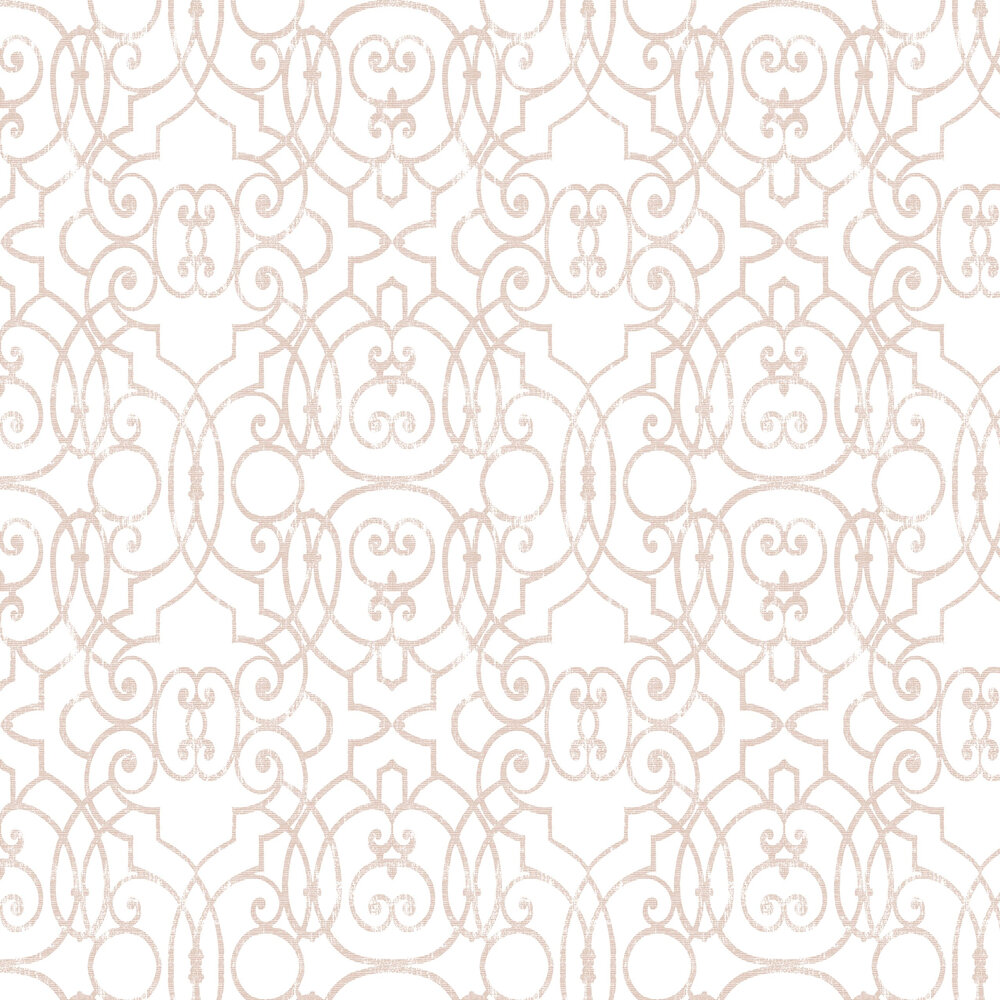 Ταπετσαρία τοίχου σε εκρού περλέ βάση, με ανατολίτικα μοτίβα σε μεταλλικό ροζ-χρυσό. Ταιριάζει σε bohemian και asian στυλ διακόσμηση
