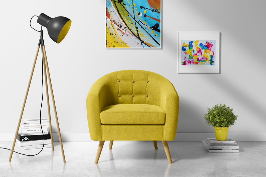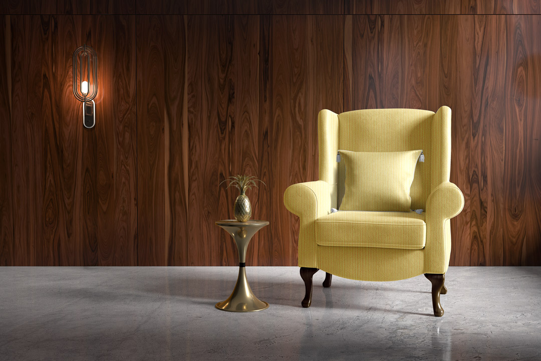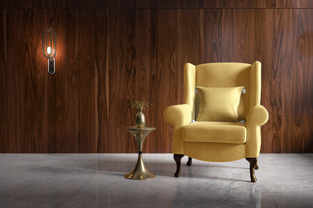 Ύφασμα επίπλωσης βελούδο, μοντέρνου και κλασικού στυλ στην απόχρωση του ζωηρού κίτρινου