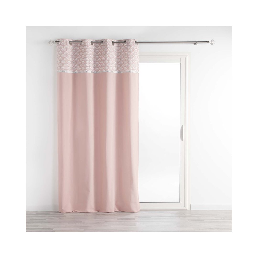 Κουρτίνα βουάλ, σε ροζ βάση με φάσα στο επάνω μέρος σε λευκό ασημί χρώμα