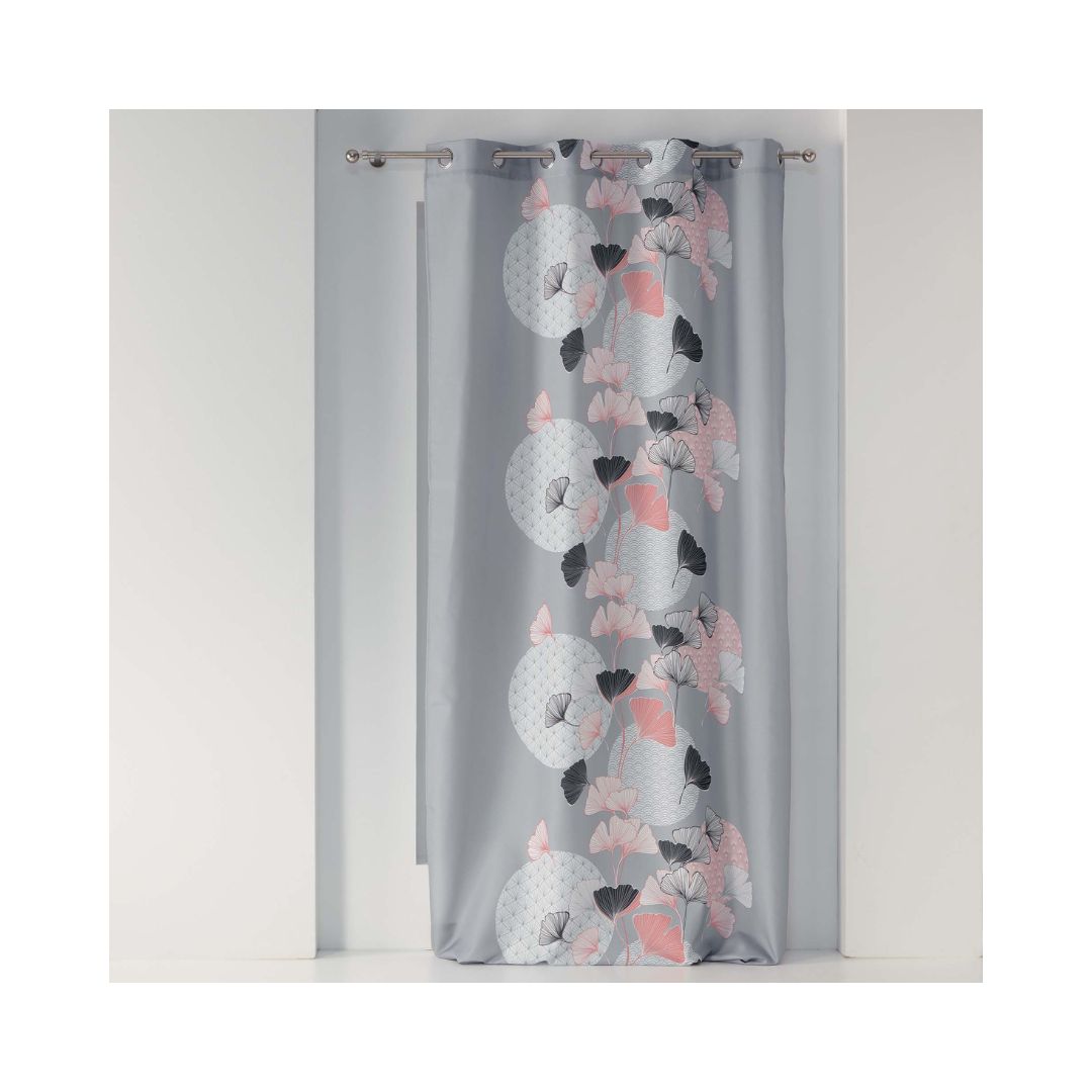 Κουρτίνα ριντό, τύπου καραβόπανο σε γκρι χρώμα με απεικόνιση λουλουδιών