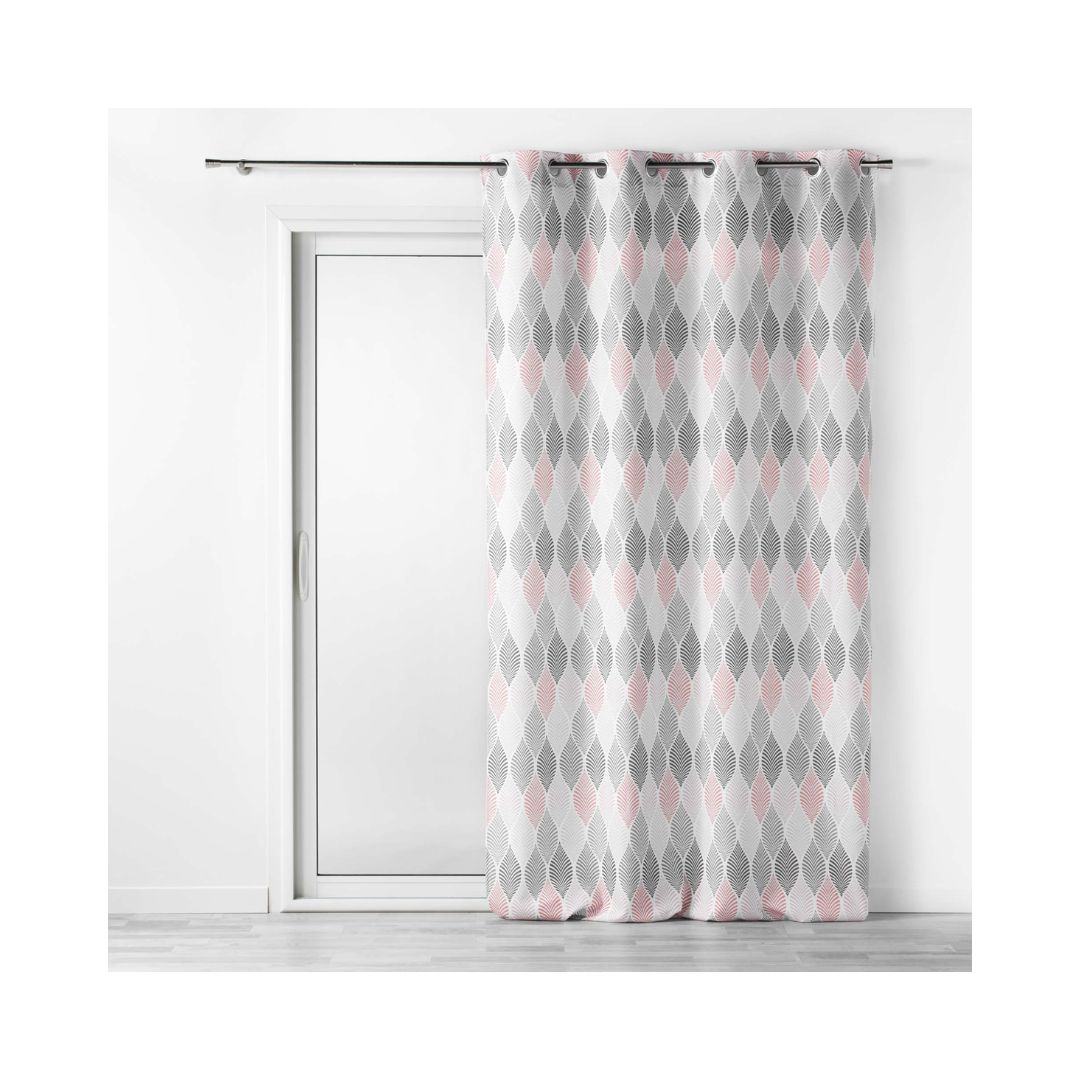 Κουρτίνα ριντό, τύπου καραβόπανο με γεωμετρικά σχέδια σε γκρι και ροζ χρώμα επάνω σε λευκή βάση