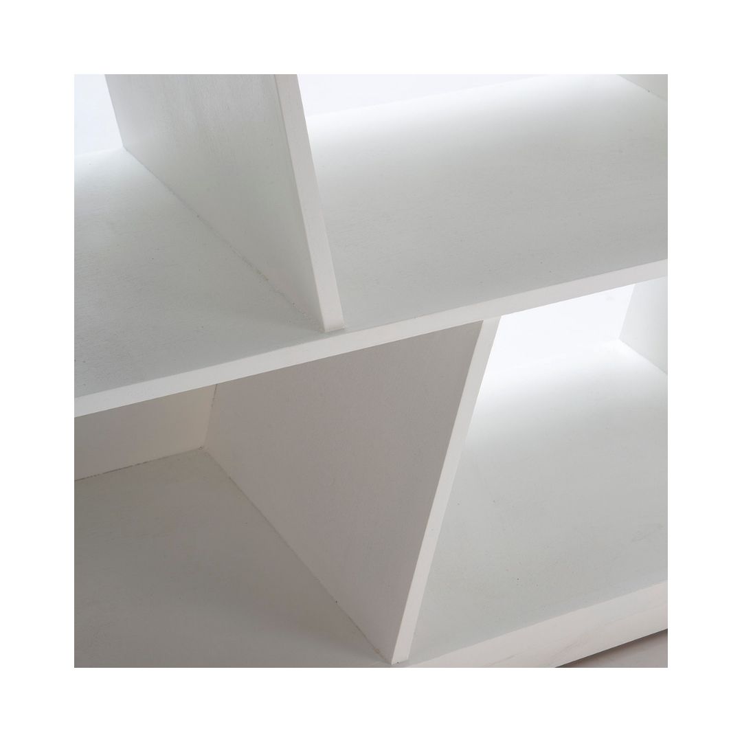 Χαμηλή, επιδαπέδια ραφιέρα, κατασκευασμένη από 100% φυσικό ξύλο, σε λευκή απόχρωση. Διαθέτει δύο οριζόντια ράφια, τα οποία εμφανίζουν τρία, διαγώνια διαχωριστικά και έχουν περισσότερο χώρο αποθήκευσης. Μπορεί να τοποθετηθεί είτε στο σαλόνι, είτε στο υπνοδωμάτιο. Διαστάσεις: Μήκος: 152 Βάθος: 42 Ύψος: 79 Βάρος: 19 κιλά