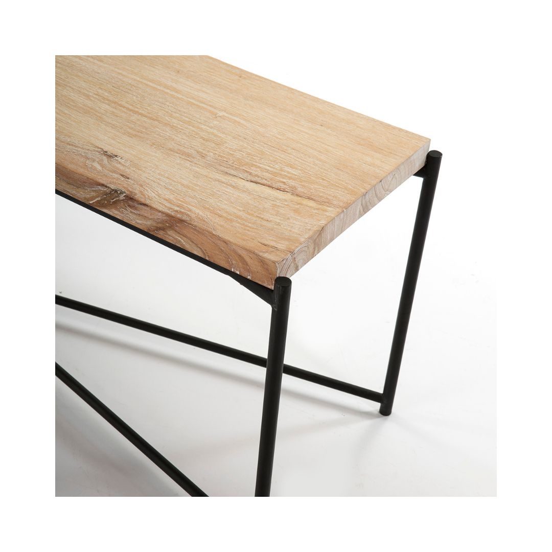 Έπιπλο τηλεόρασης με μπεζ ξύλινη επιφάνεια και μεταλλική μαύρη βάση