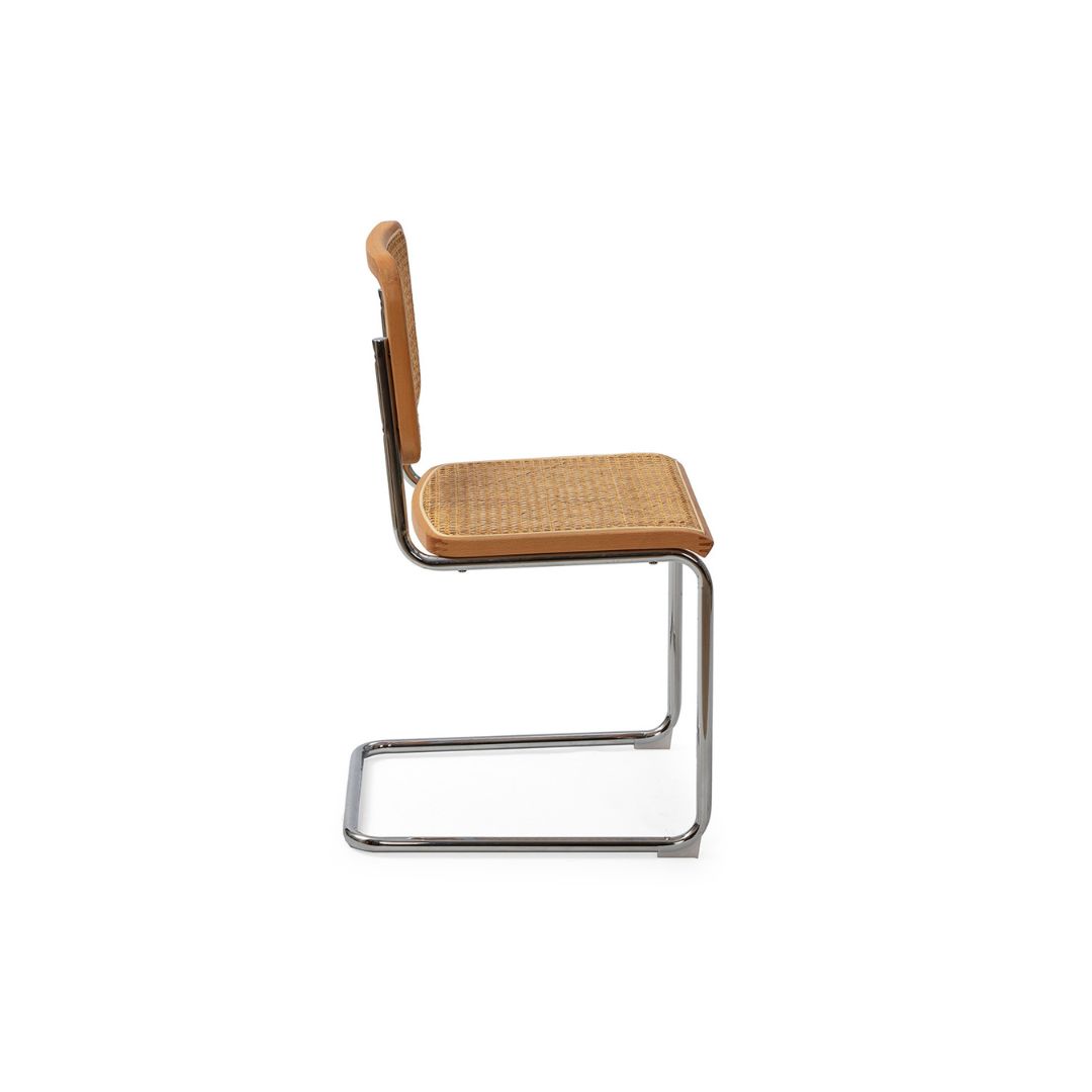 Καρέκλα τραπεζαρίας, κατασκευασμένη από ψάθα, ξύλο και μέταλλο. Διαθέτει ασημένιου χρώματος μεταλλικές βάσεις και ψαθωτή επένδυση που σχηματίζει διακριτικά γεωμετρικά σχήματα. Αποτελεί μια επιλογή που υπηρετεί πολλά στυλ διακόσμησης. Διαστάσεις: Μήκος: 46 Βάθος: 46 Ύψος: 82