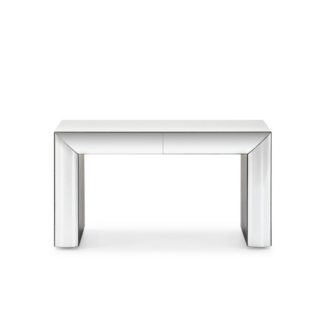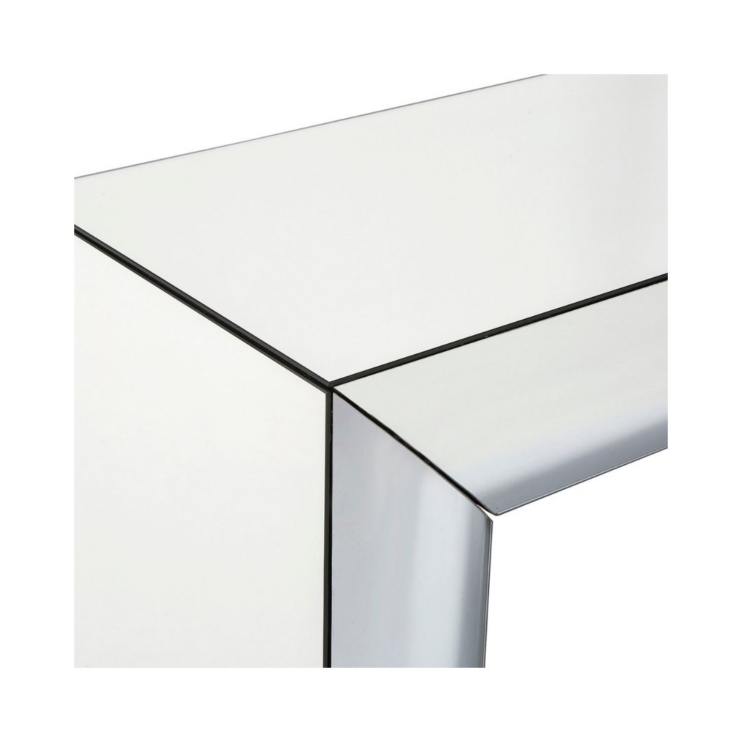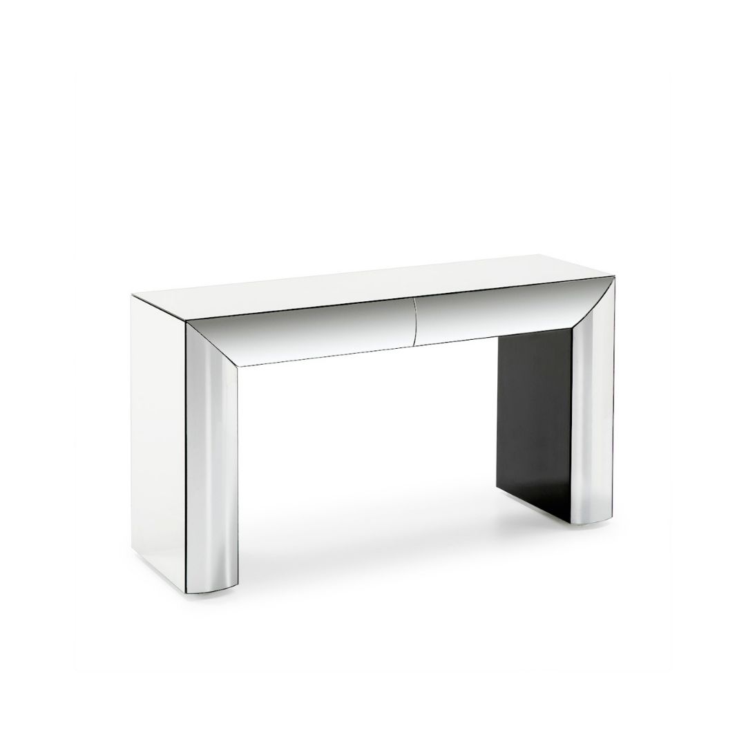 Κονσόλα κατασκευασμένη από καθρέφτη και mdf. Διαθέτει ανάγλυφη επιφάνεια και καθρεφτίζει σε όλες τις πλευρές του. Αποτελείται από γραμμικές μαύρες λεπτομέρειες που προσδίδουν μεγαλύτερη κομψότητα. Διαστάσεις: Μήκος: 140 Βάθος: 45 Ύψος: 80 Βάρος: 50 κιλά