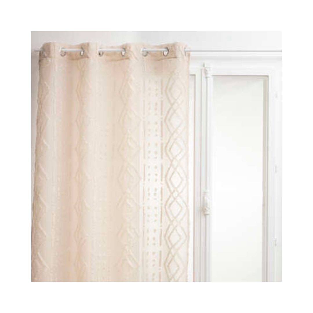 Κουρτίνα ζακάρ με ανάγλυφη ύφανση σε μπεζ χρώμα. Μια κουρτίνα με ανάγλυφα σχέδια που δίνει την αίσθηση του χειροποίητη υφαντού. Προτείνεται για σαλόνι, κρεβατοκάμαρα και κουζίνα. Ταιριάζει ιδανικά με ethnic – boho διακοσμητικό στυλ.