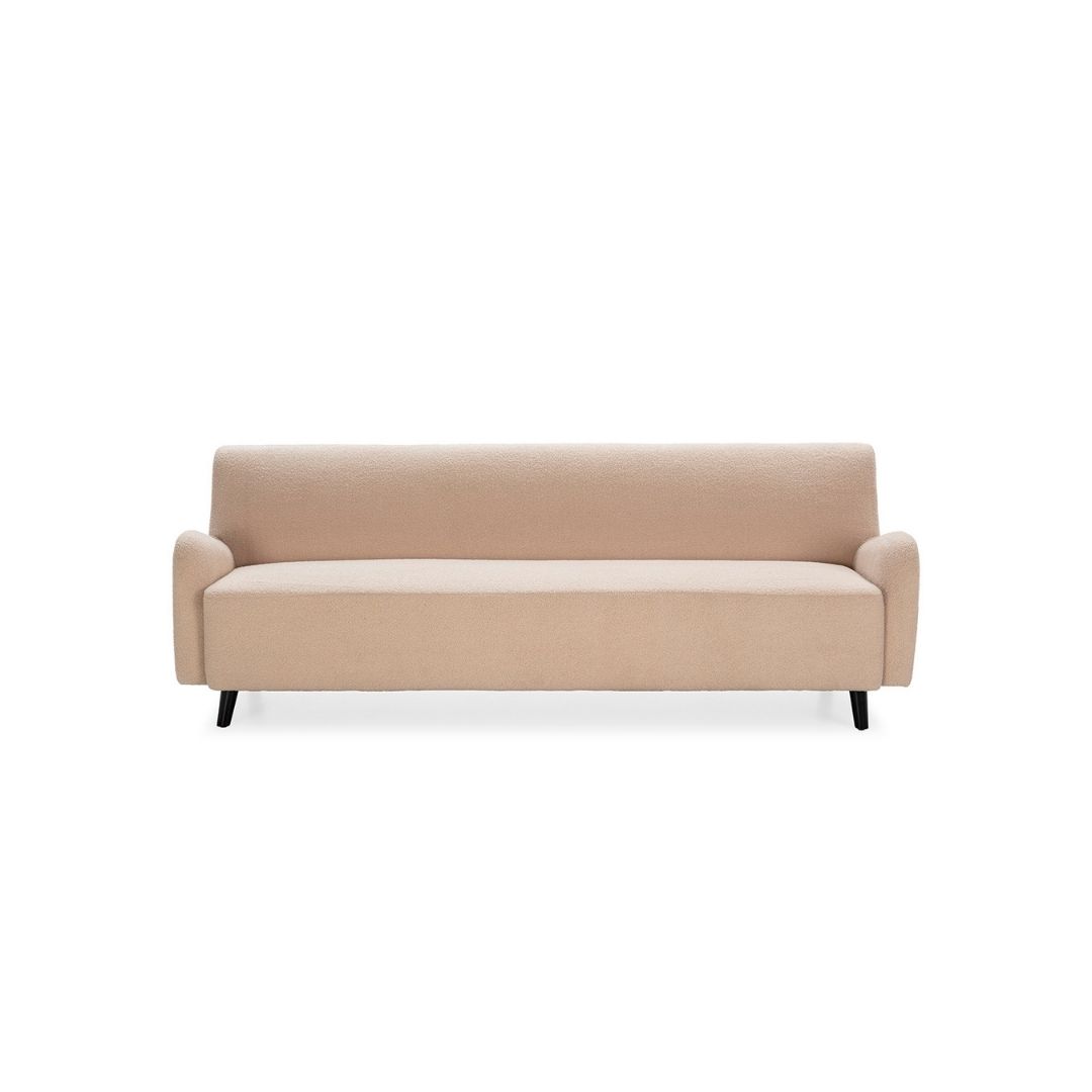 Αναπαυτικός καναπές, ενδεδυμένος από 100% ολόμαλλο υλικό σε μπεζ εκρού απόχρωση. Στηρίζεται σε τέσσερα ξύλινα υποπόδια και είναι αρκετά ευρύχωρος και άνετος για περισσότερα από τρία άτομα. Ιδανική επιλογή για σκανδιναβικό, ρετρό, νεοκλασικό, ορεινό και βιομηχανικό στυλ διακόσμησης. Διαστάσεις: Μήκος: 220 Βάθος: 70 Ύψος: 75