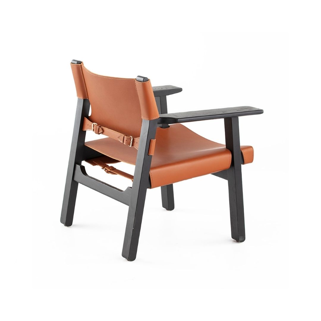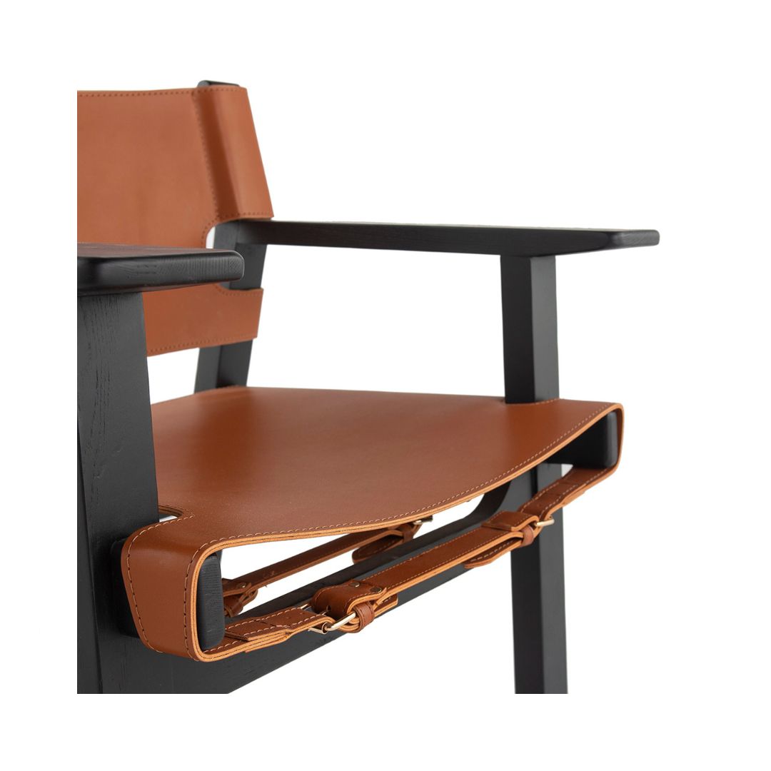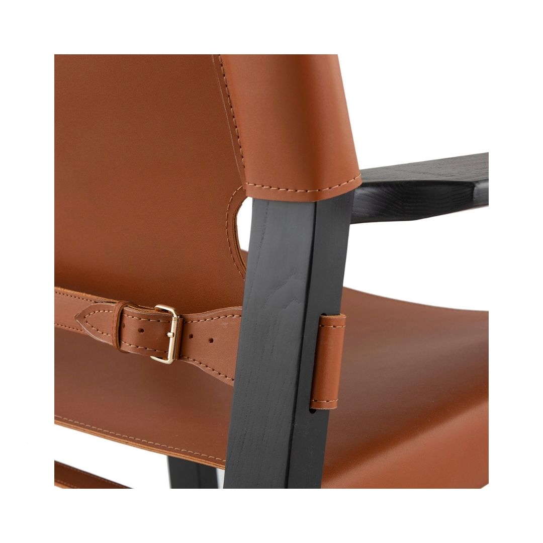 Δερμάτινη πολυθρόνα, ιδιαίτερης κατασκευής, σε καφέ χρώμα. Διαθέτει ξύλινα μπράτσα και πόδια σκούρων καφέ αποχρώσεων. Η επένδυση της είναι εύκολα αποσπώμενη, καθώς συνδέεται με ζωνάρια στον σκελετό της πολυθρόνας. Είναι μια επιλογή σκανδιναβικού, ethnic, ορεινού αλλά και βιομηχανικού στυλ διακόσμησης. Διαστάσεις: Μήκος: 75 Βάθος: 67 Ύψος: 74 Βάρος: 13,50 κιλά