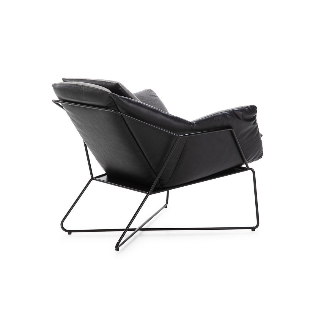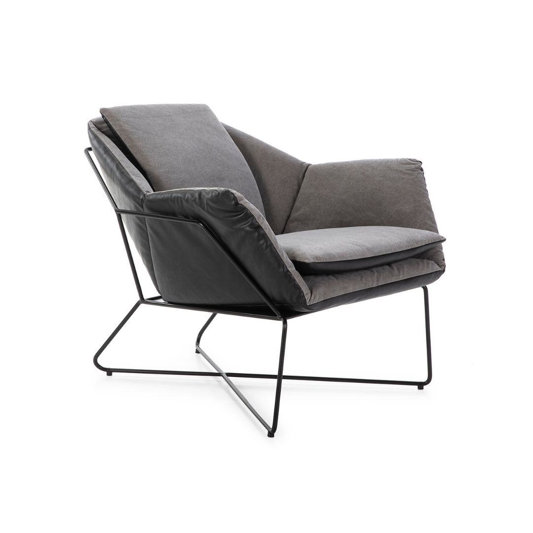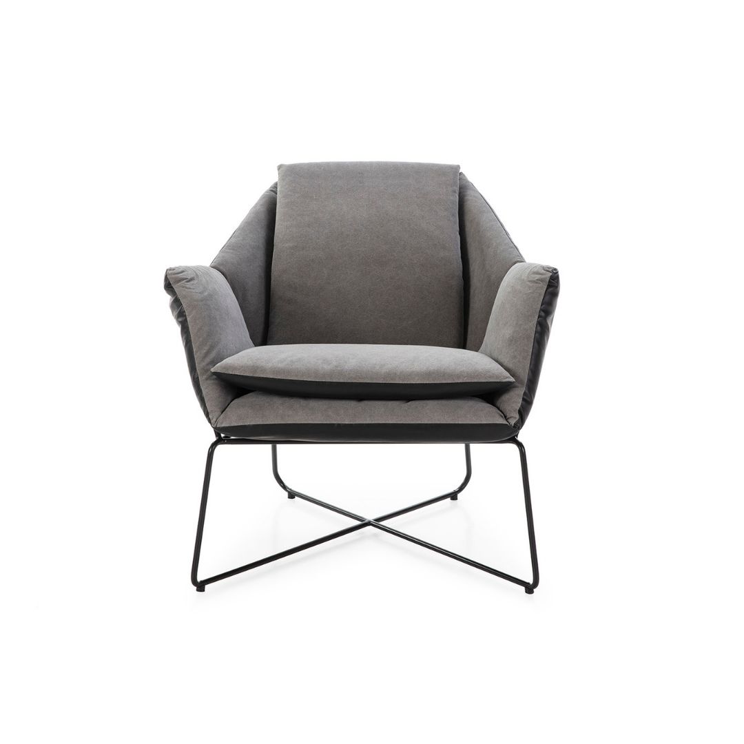 Πολυθρόνα, ιδιαίτερου σχεδιασμού και κατασκευής, καθώς διαθέτει μαύρο μεταλλικό σκελετό και μεγάλη μαξιλάρα στη βάση της, η οποία είναι επενδεδυμένη στην κάτω όψη με μαύρο δερμάτινο υλικό και στην πάνω όψη με μονόχρωμο γκρι ύφασμα. Αποτελεί ένα ξεχωριστό κομμάτι, μοντέρνου, σκανδιναβικού αλλά και βιομηχανικού διακοσμητικού στυλ. Διαστάσεις: Μήκος: 78 Βάθος: 87 Ύψος: 74 Βάρος: 16,20 κιλά