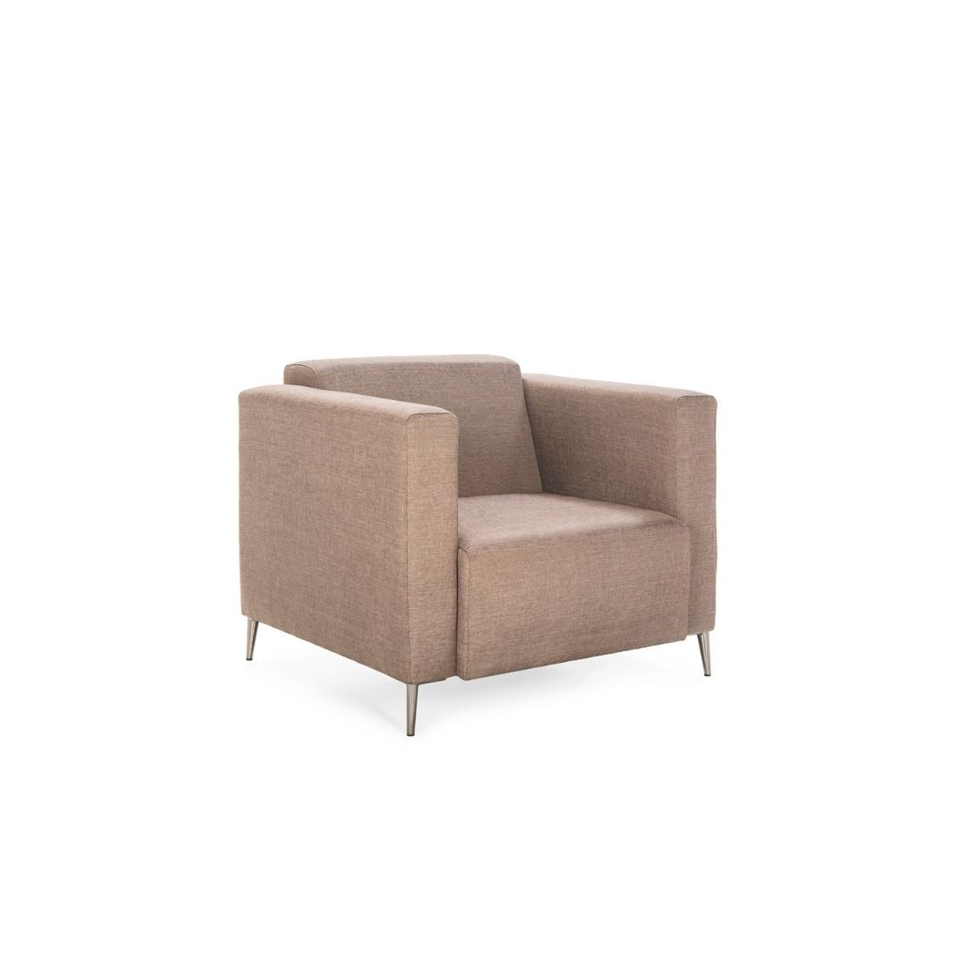 Πολυθρόνα επενδεδυμένη με ύφασμα, σε μπεζ καμηλό απόχρωση. Διαθέτει τετράγωνη πλάτη και ψηλά μπράτσα. Είναι αναπαυτική και στηρίζεται σε τέσσερα χαμηλά σιδερένια πόδια. Αποτελεί μια μοντέρνα διακοσμητική επιλογή, που μπορεί όμως να υπηρετήσει περισσότερα στυλ. Διαστάσεις: Μήκος: 100 Βάθος: 88 Ύψος: 79