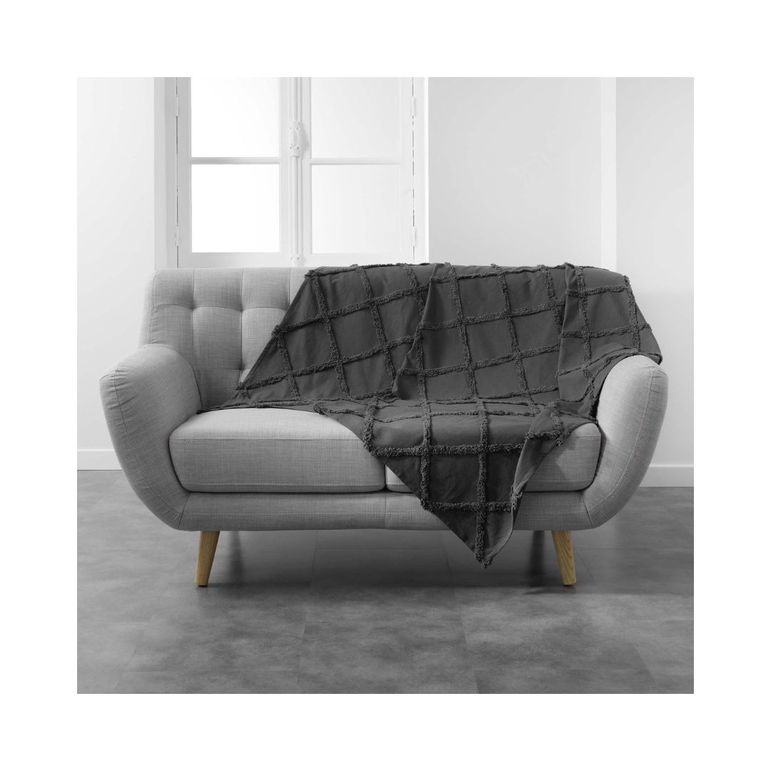 Ριχτάρι σε γκρι χρώμα με ανάγλυφους ρόμβους σε μαλακή υφή. Ιδανική επιλογή για καναπέ και πολυθρόνα. Ταιριάζει αρμονικά με μοντέρνο και art deco διακοσμητικό στυλ. Μήκος 125 εκ. x Πλάτος 150 εκ.