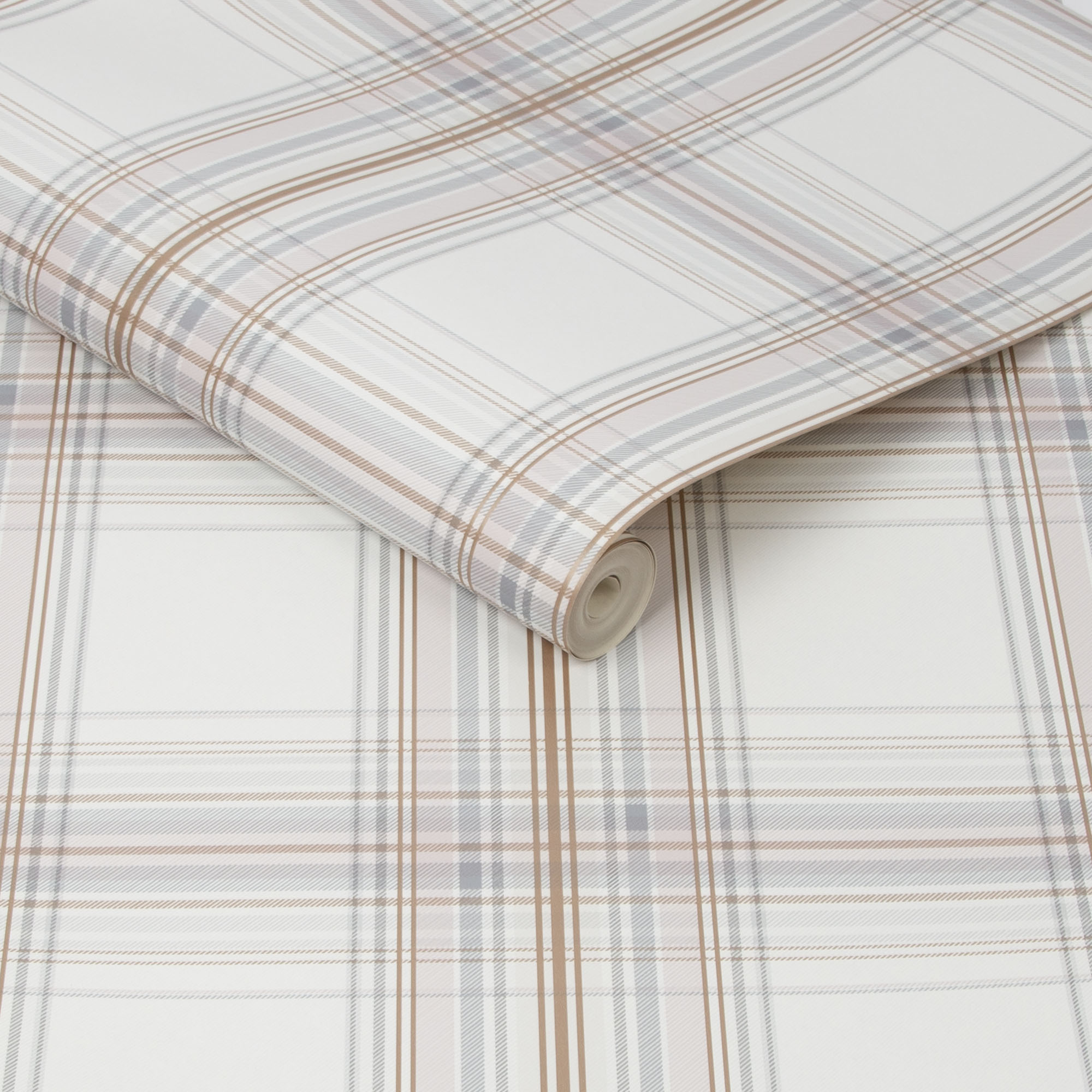 Ταπετσαρία τοίχου με απαλή υφή και επαναλαμβανόμενο καρό μοτίβο σε γκρί, ροζ, λευκές και μπρονζέ αποχρώσεις