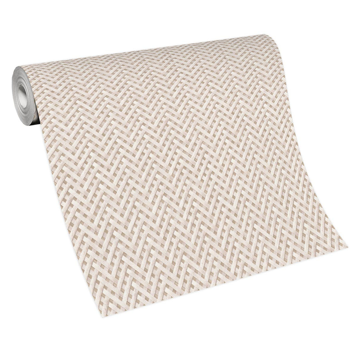 Ταπετσαρία τοίχου σε εκρού χρώμα, με αποτύπωση ψάθας με περίτεχνη πλέξη. Θα δώσει έναν γήινο, φυσικό τόνο σε κάθε χώρο που θα τοποθετηθεί. Ιδανική επιλογή για τροπικό, bohemian και asian στυλ διακόσμηση.