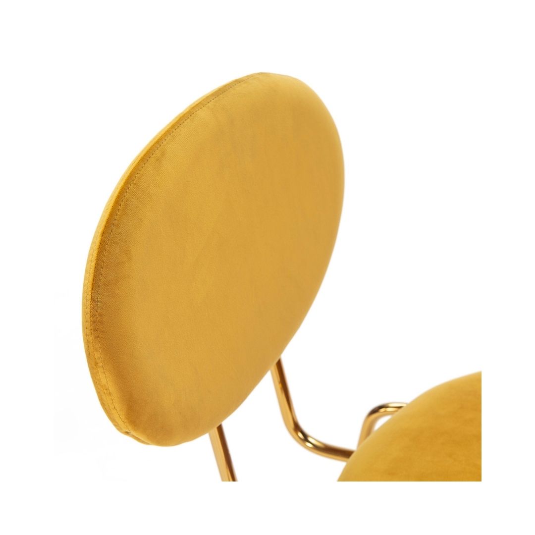 Βελουτέ καρέκλα τραπεζαρίας σε κίτρινο χρώμα με μεταλλική χρυσή βάση