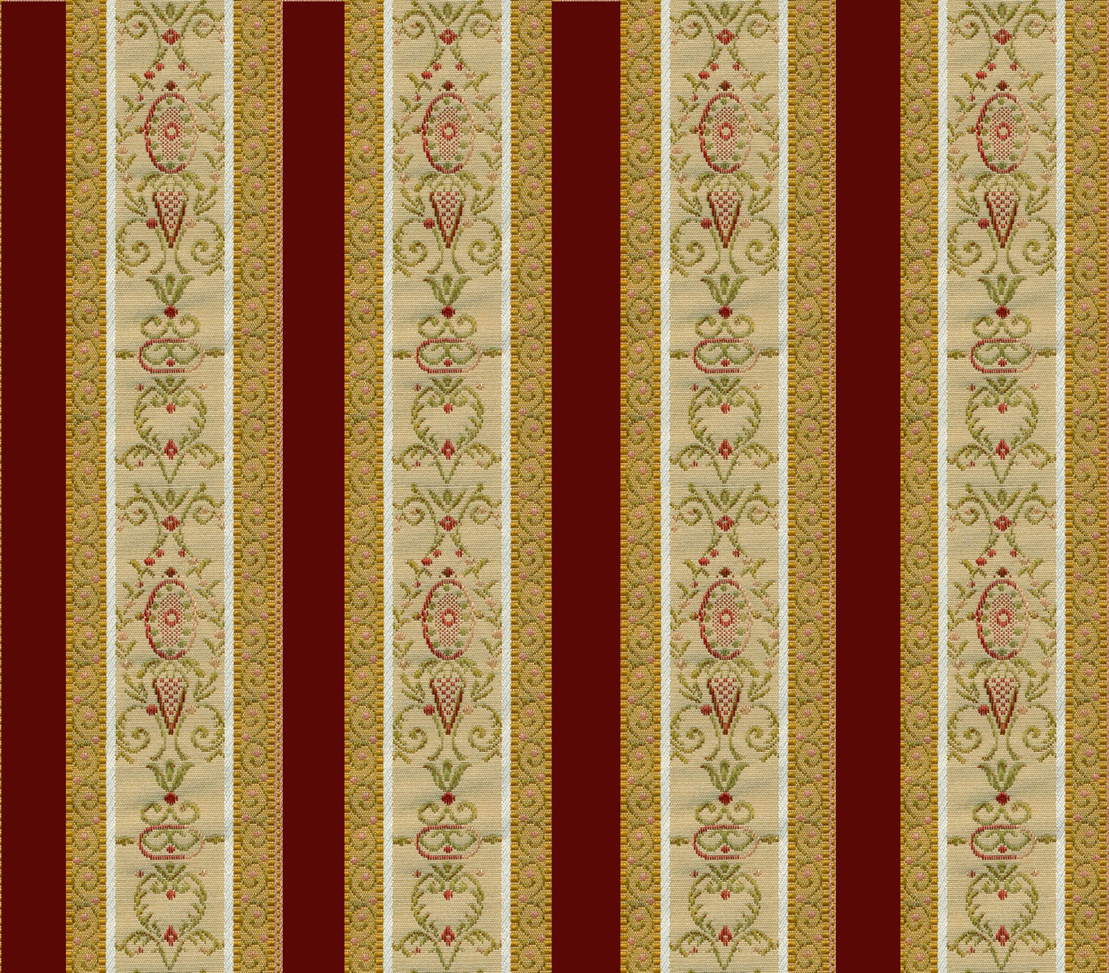 Ύφασμα επίπλωσης ζακάρ, με ρίγα και νταμάσκ στην ύφανσή του, σε απόχρωση του μπεζ και μπορντώ. Είναι πολύ ανθεκτικό στην τριβή με 5.000 βαθμούς Martindale. Κατάλληλο για σαλόνι και κρεβατοκάμαρα. Ιδανικό για κλασικό διακοσμητικό στυλ.