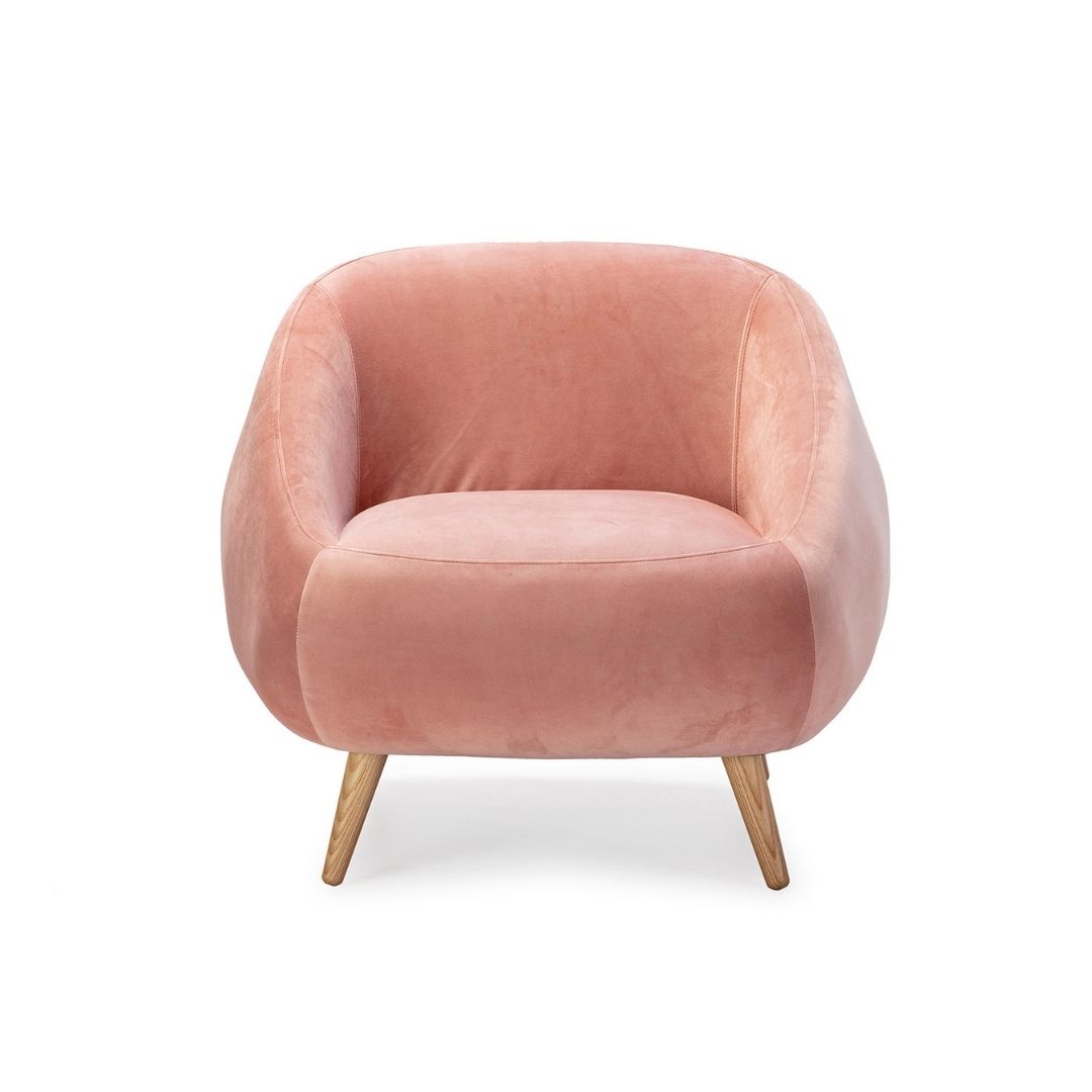 Πολυθρόνα από βελούδο και ξύλο σε ροζ απόχρωση