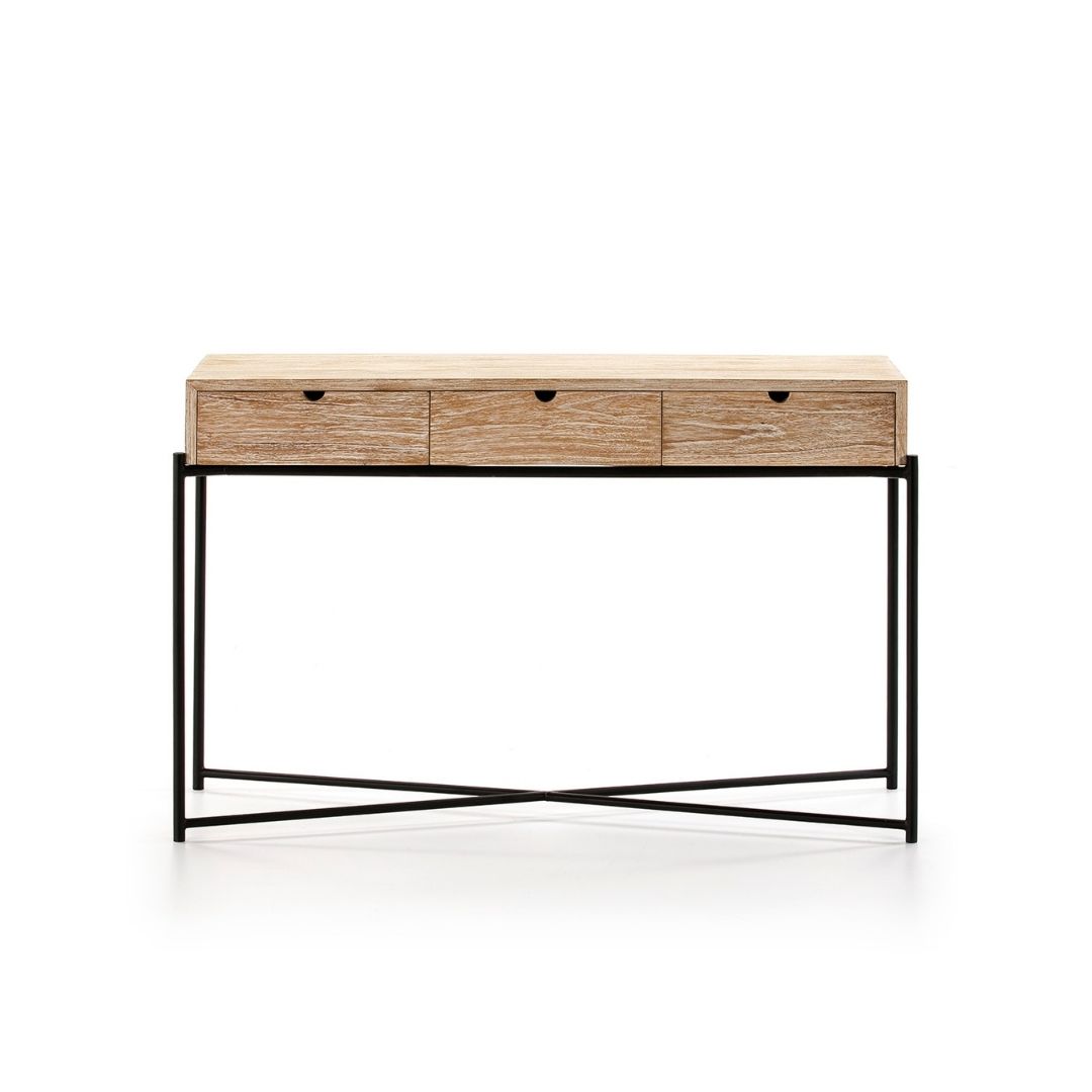 Ξύλινη κονσόλα με συρτάρια σε φυσικό καφέ χρώμα