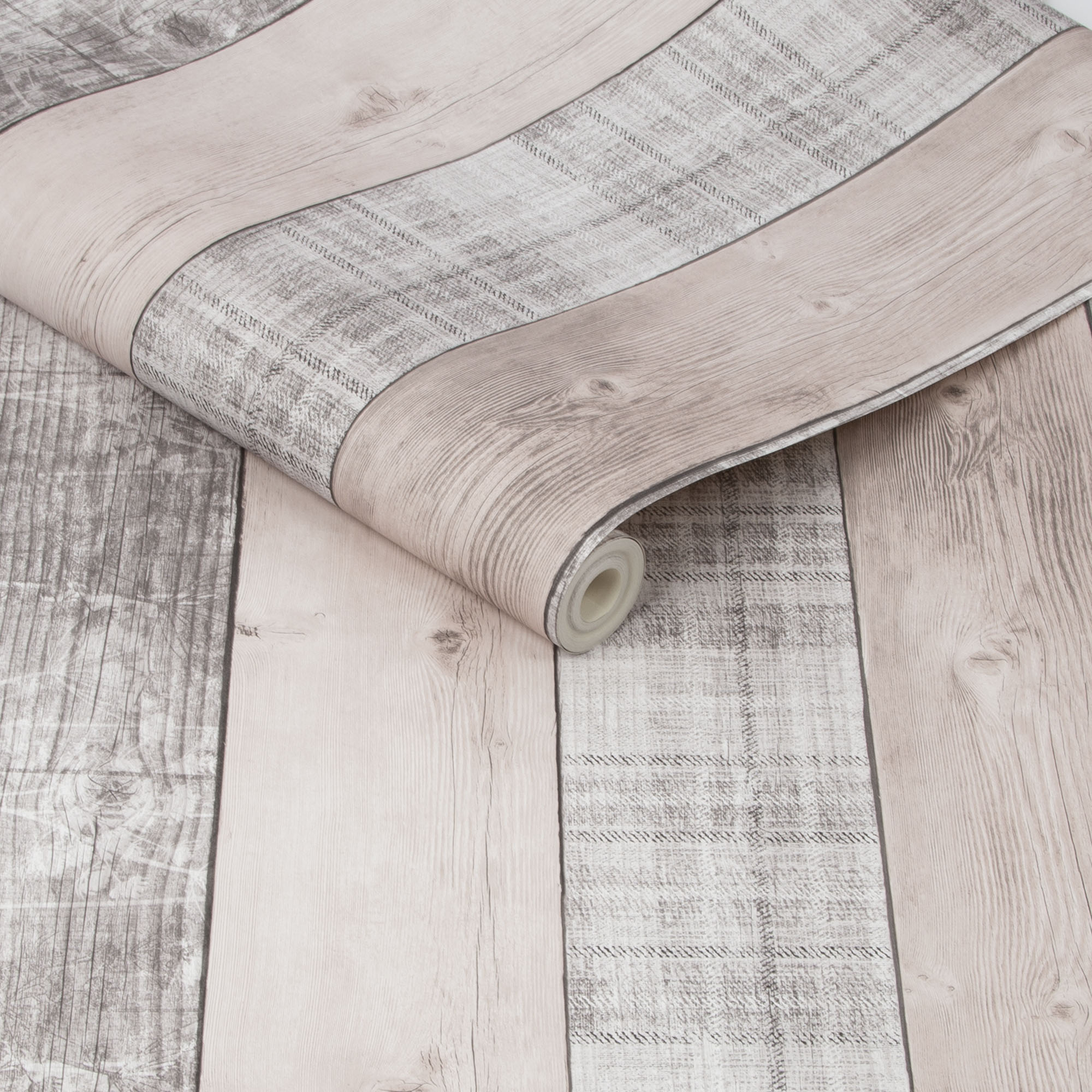 Ταπετσαρία τοίχου με απαλή υφή και αποτύπωμα ξύλου και καρό σχεδίου, σε γκρί και μπέζ αποχρώσεις