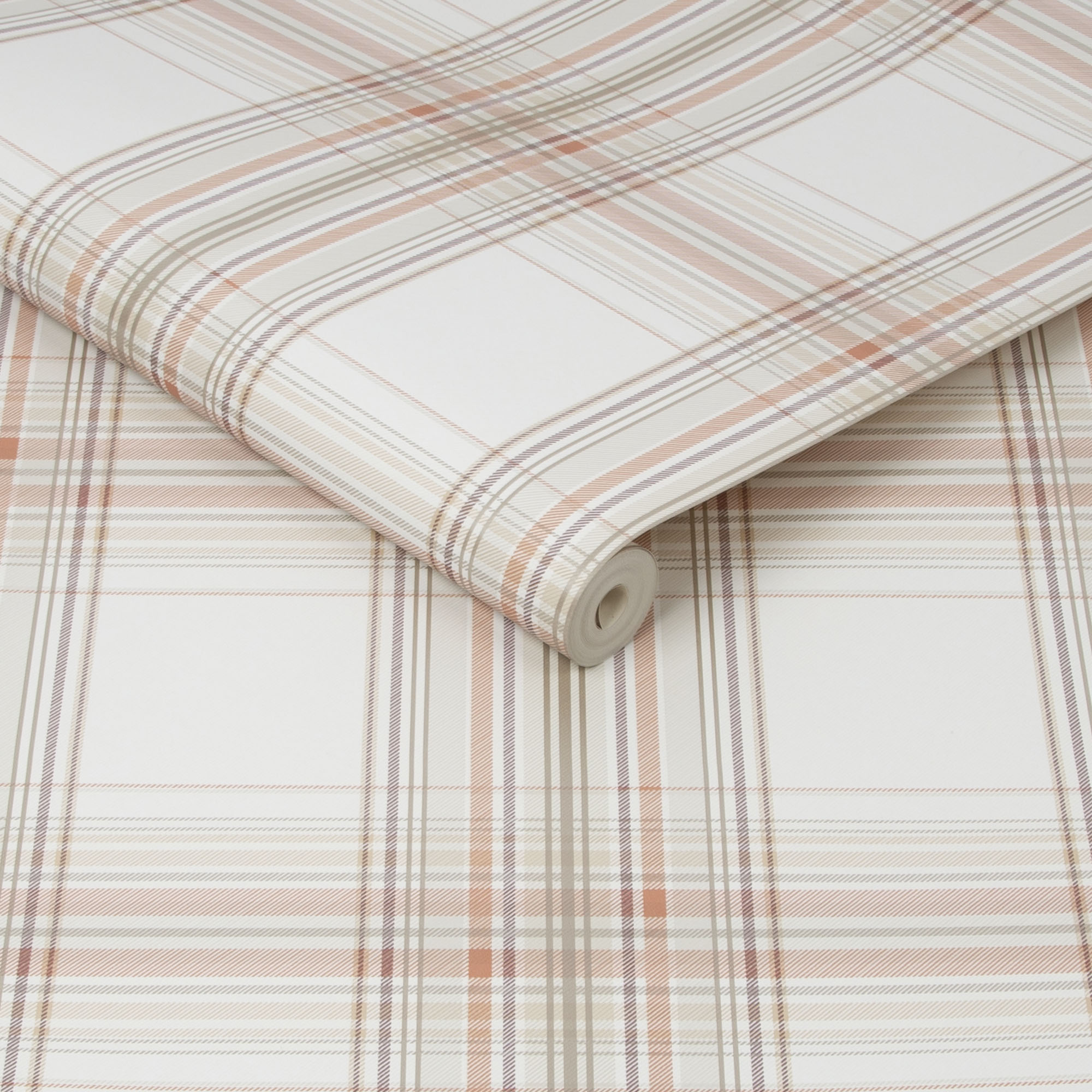 Ταπετσαρία τοίχου με απαλή υφή και επαναλαμβανόμενο καρό μοτίβο σε εκρού, μπέζ και ροδακινί αποχρώσεις