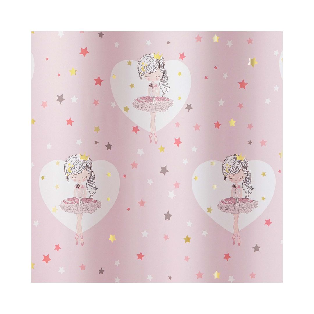 Κουρτίνα με υφή γάζας σε ροζ χρώμα με παιδικό θέμα μπαλαρίνα