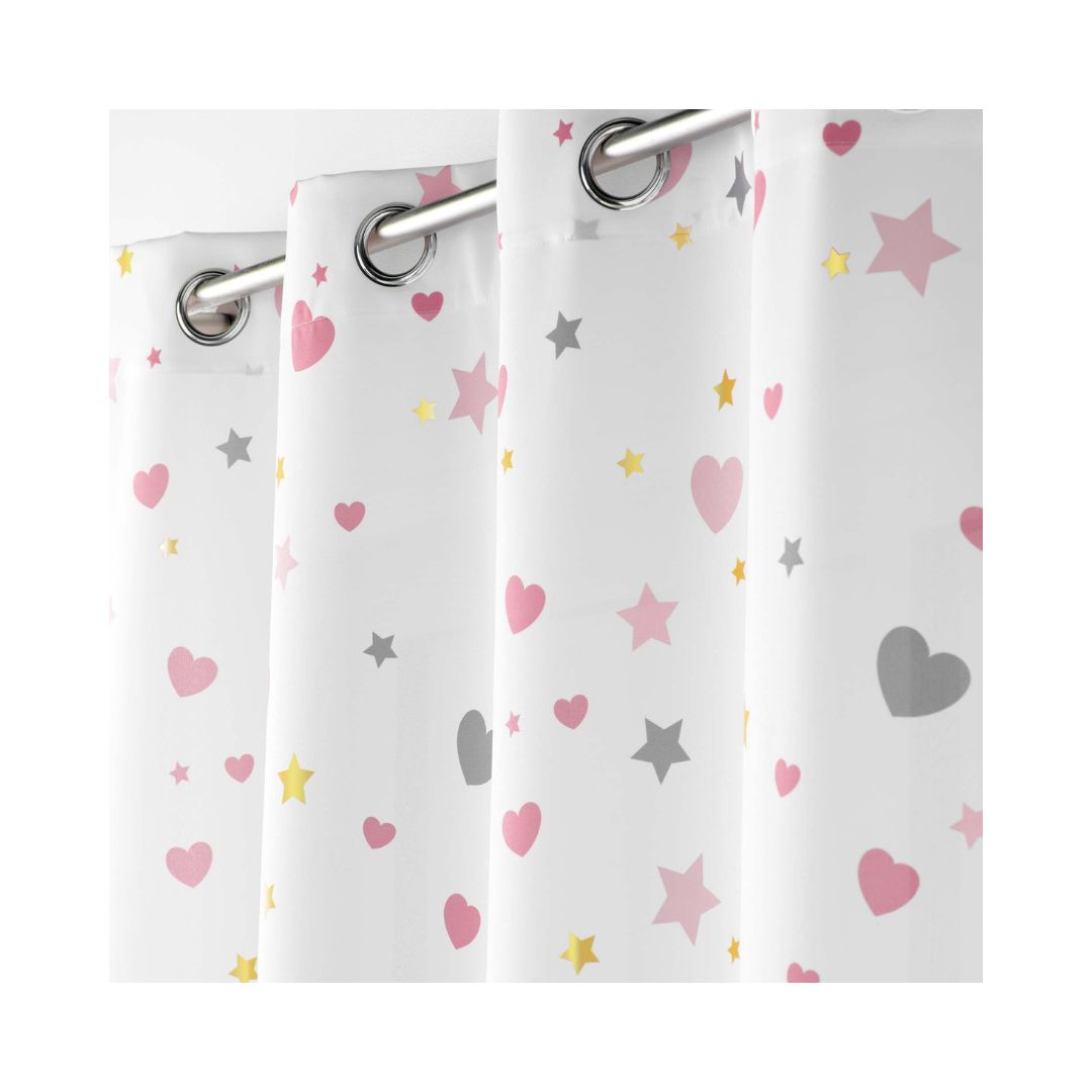 Κουρτίνα με υφή γάζας σε ροζ χρώμα με παιδικό θέμα καρδιές και αστέρια