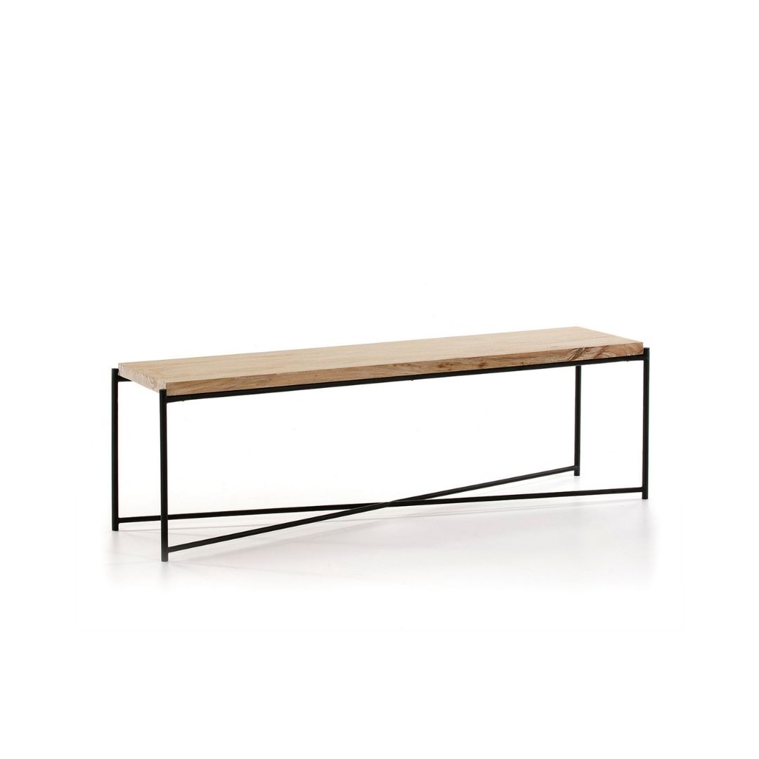 Έπιπλο τηλεόρασης με μπεζ ξύλινη επιφάνεια και μεταλλική μαύρη βάση