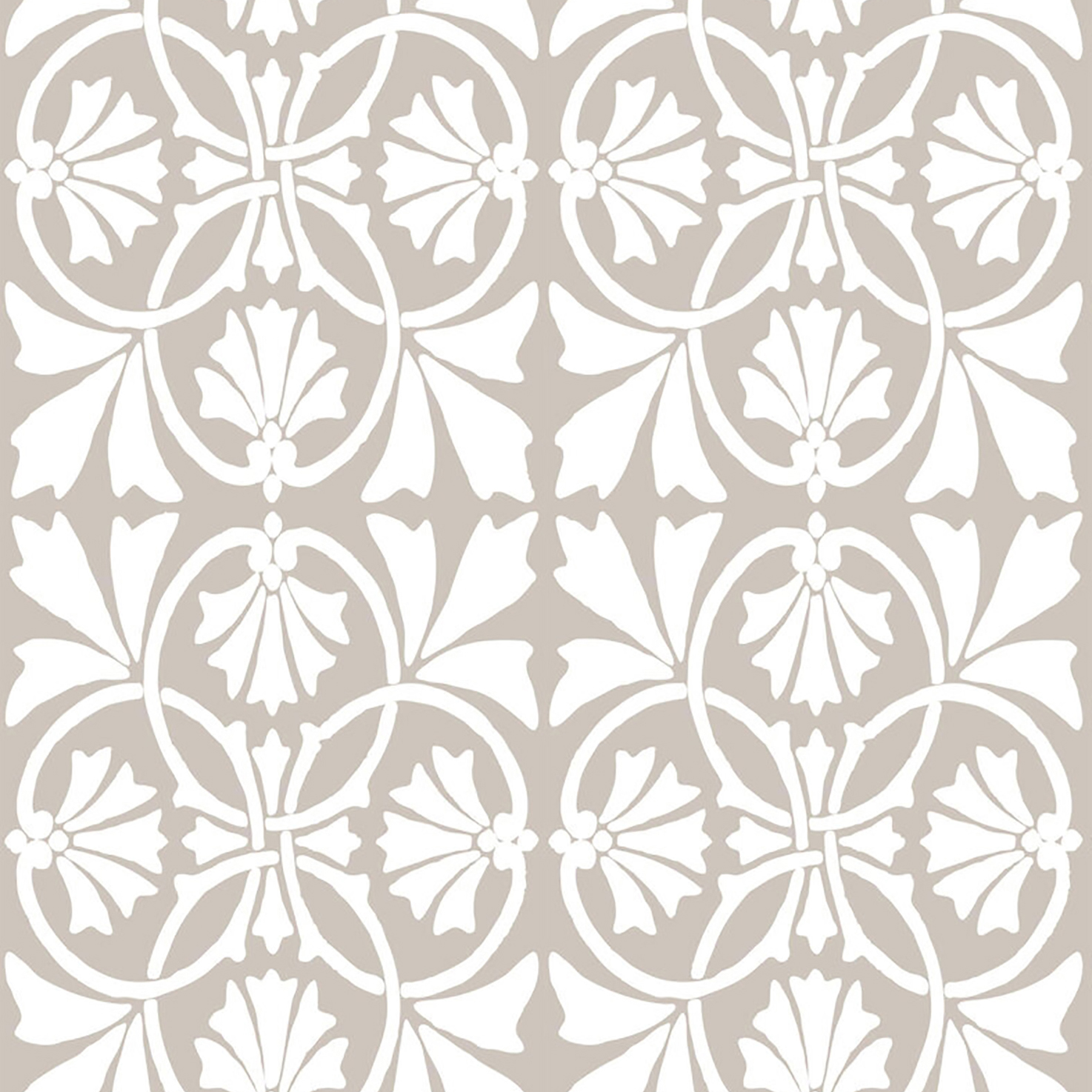 • × Ταπετσαρία τοίχου σε γκρι-μπεζ αποχρώσεις με “βασιλικά” μοτίβα, ιδανική για νεοκλασικό στυλ διακόσμησης.
