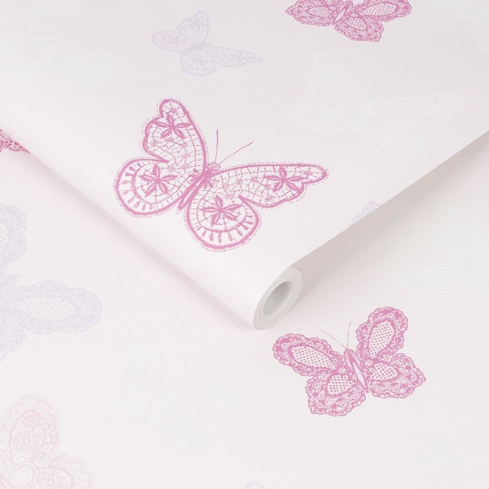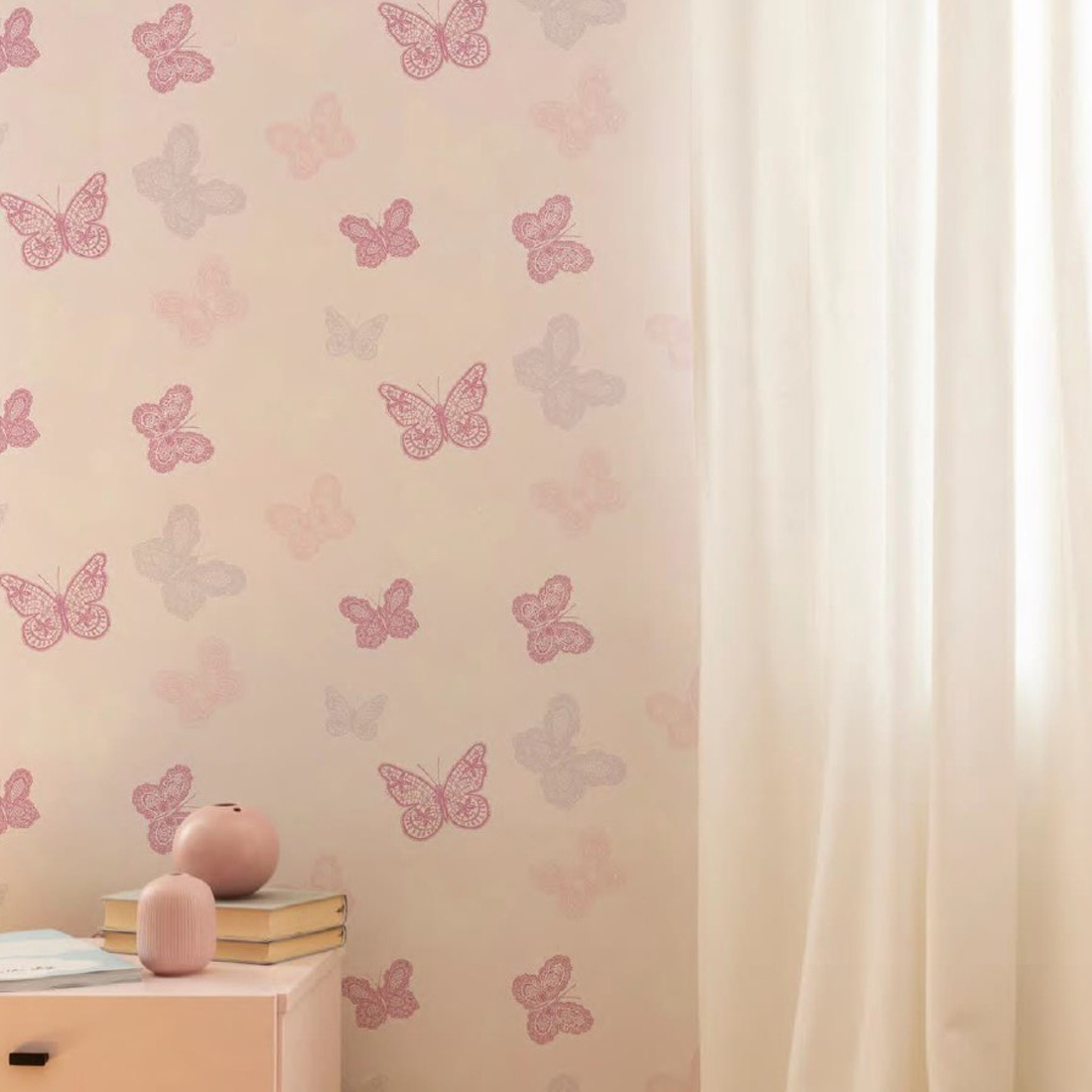 Ταπετσαρία τοίχου παιδική, ροζ και μοβ αποχρώσεων με υπέροχες πεταλούδες που θα ξετρελάνουν τις μικρές σας πριγκίπισσες