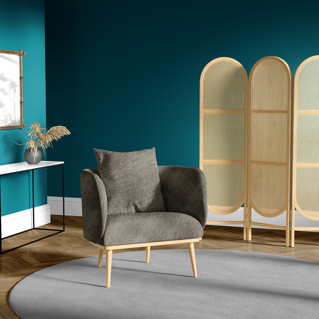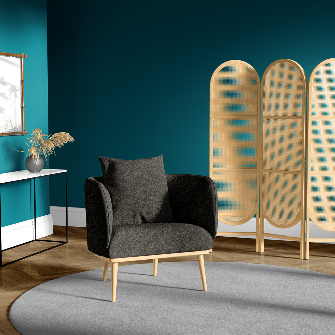 Βελούδινη πολυθρόνα με μεταλλική βάση σε μπλε σκούρο χρώμα