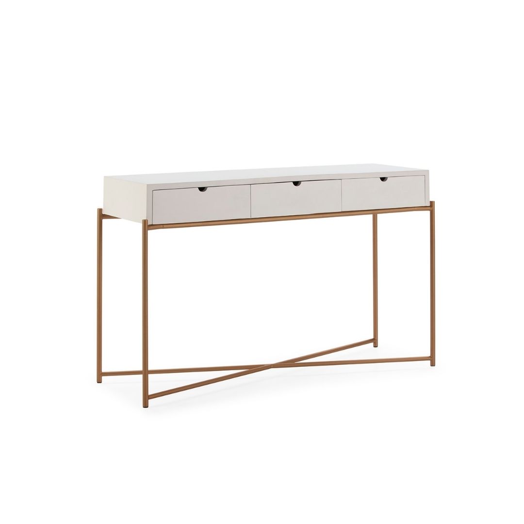Κονσόλα με ξύλινη λευκή επιφάνεια και μεταλλική χρυσή βάση