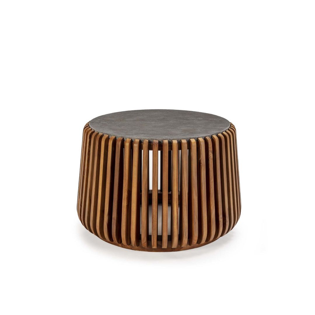 Στρογγυλό τραπέζι σαλονιού με συνδυασμό φυσικού ξύλου και πέτρας