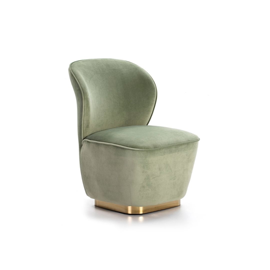 • × Βελούδινη πολυθρόνα με μεταλλική βάση σε λαδί απόχρωση