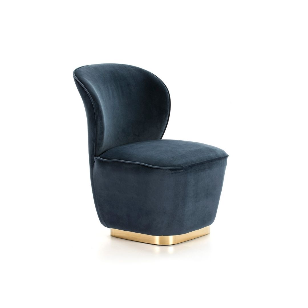 Βελούδινη πολυθρόνα με μεταλλική βάση σε μπλε σκούρο χρώμα