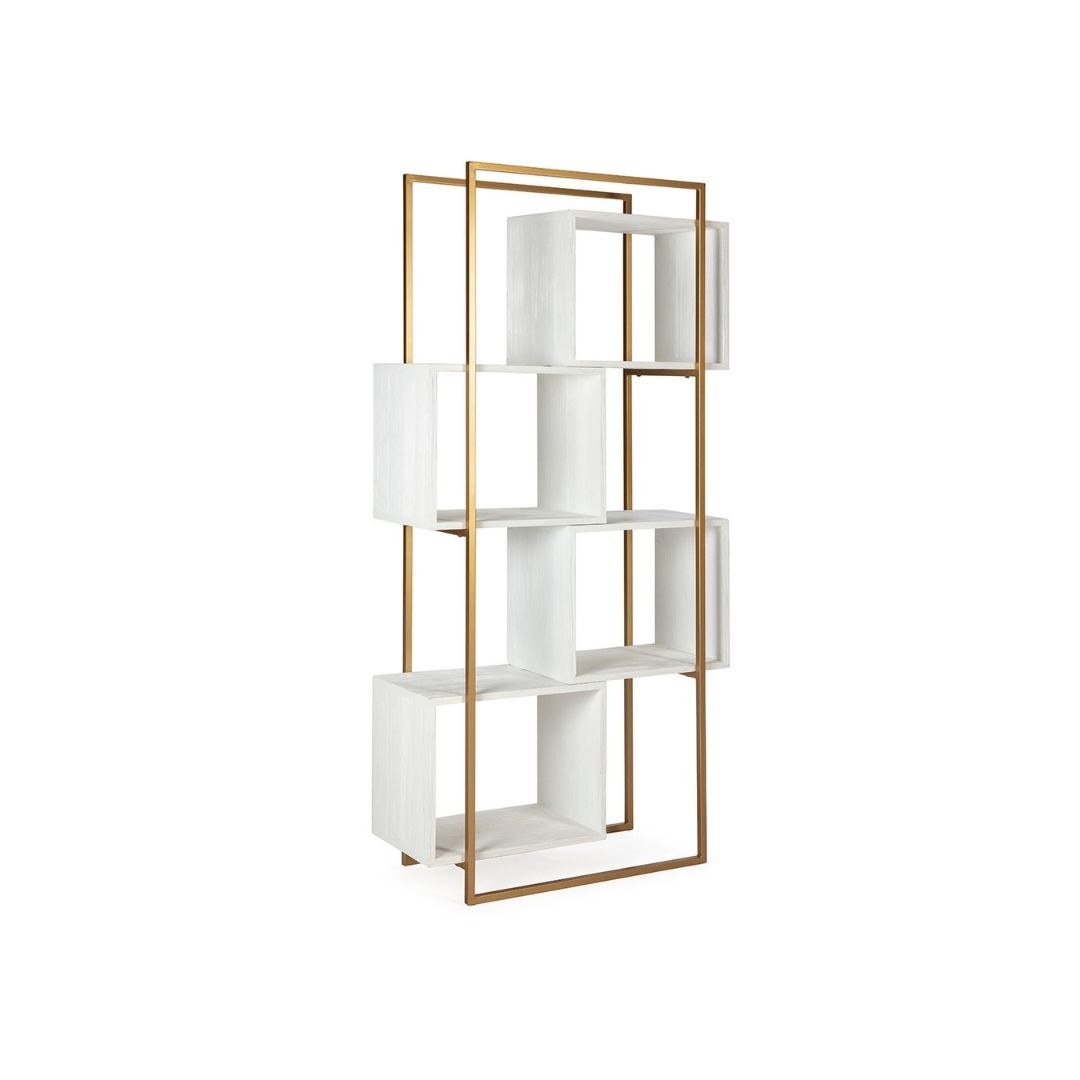 Περίτεχνου design βιβλιοθήκη από λευκό ξύλο με μεταλλικό χρυσό σκελετό